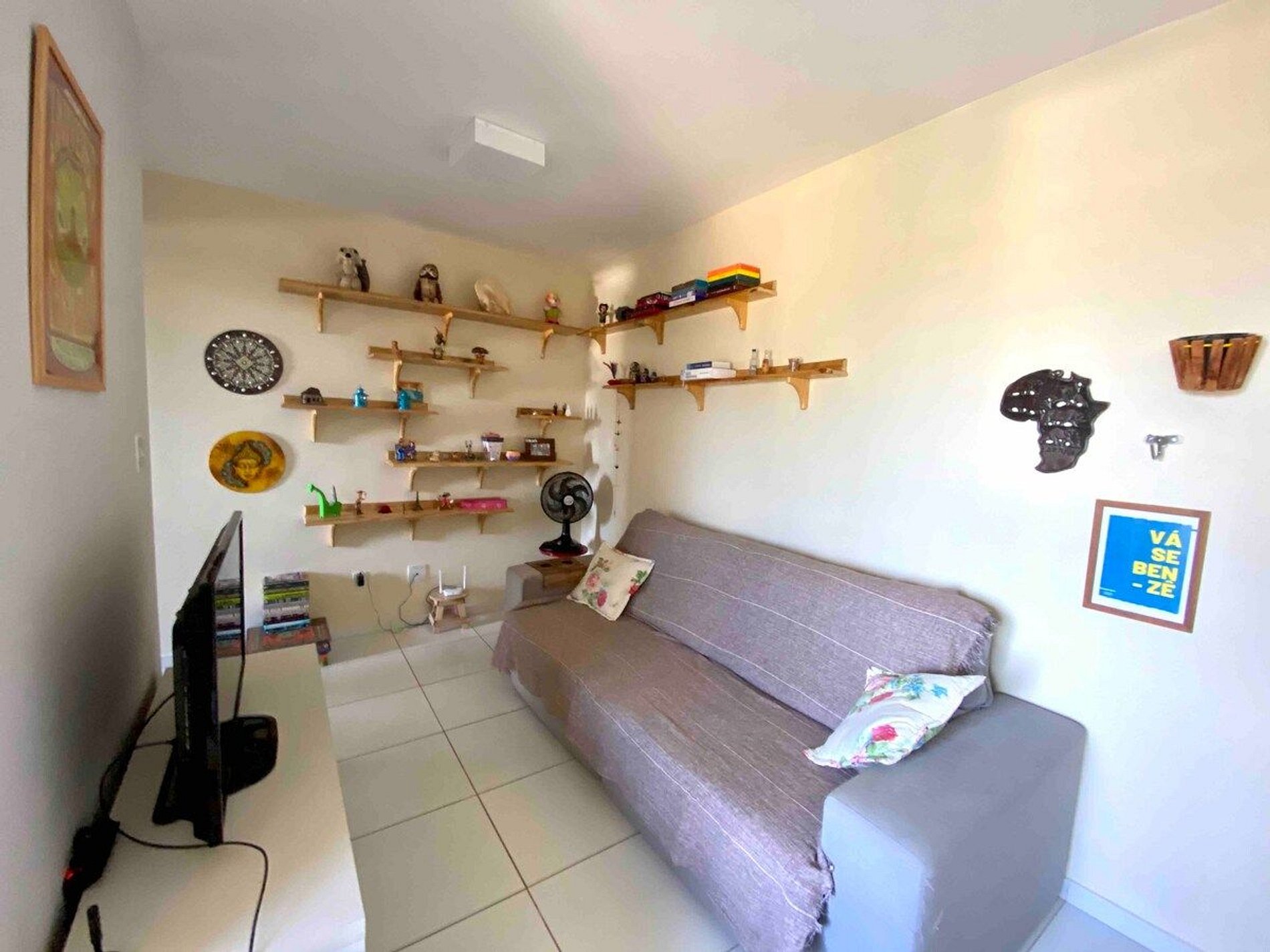 Apartamento super confortável com Wi-Fi num agradável condomínio familiar com uma suíte com cama de casal e ar-condicionado, um quarto com duas camas de solteiro e ventilador, mais um quarto com mesa de notebook, cadeira giratória e guarda-roupas 6 portas, além de banheiro social. Sala com rede, plantinhas e um grande e gostoso sofá expansivo, bem em frente a uma bela TV com possibilidade de acesso a NETFLIX e YOUTUBE.Mesa para quatro pessoas numa ventilada varanda integrada à sala, com vista para muito céu e paisagem verde. Cozinha é equipada com cooktop, forno, microondas, geladeira, sanduicheira, liquidificador, além de panelas, pratos, copos, talheres e etc. Área de serviço com máquina de lavar, varal e tanque.