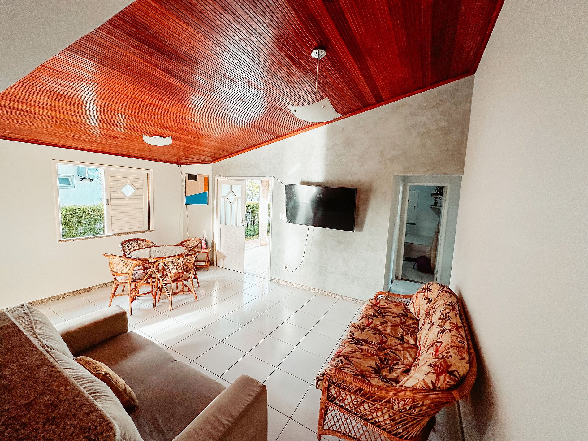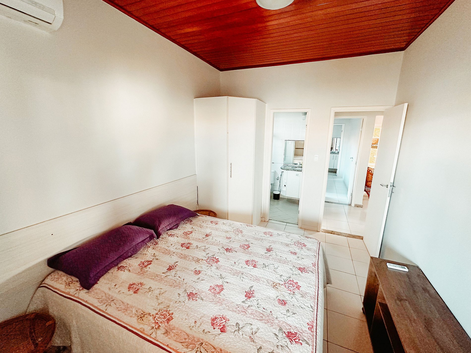 No espaço interno o ambiente é super confortável com três quartos sendo dois suítes. Todos os quartos possuem guarda-roupas. Temos AR-CONDICIONADO NOS TRÊS QUARTOS e ventiladores a disposição na casa. Contamos com uma maravilhosa sala de estar com SOFÁS CONFORTÁVEIS, conjunto de mesa com cadeiras e SMARTV 58’’. Temos ainda uma super cozinha bem arejada e equipada com utensílios básicos necessários para uma ótima estadia, com DUAS GELADEIRAS sendo uma duplex, microondas, filtro de água, armário amplo e adaptado, FOGÃO 6 BOCAS COM FORNO, pia acoplada a balcão. Internamente a casa contamos com o total de TRÊS BANHEIROS completos.