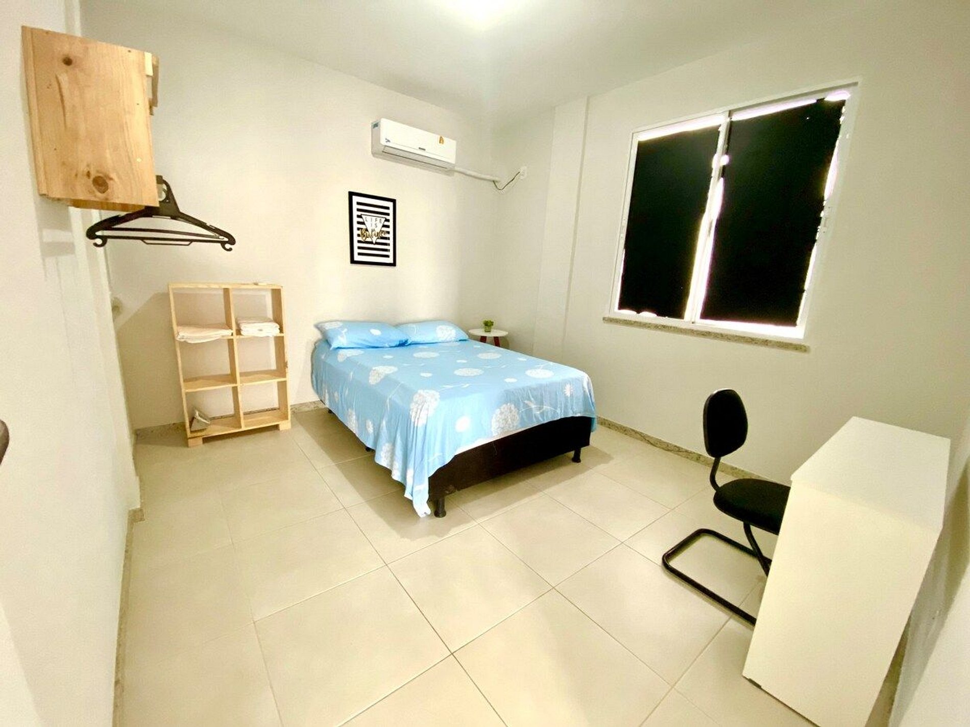 O espaço é composto por sala e cozinha integrada e um banheiro privativo. Possui ainda dois quartos, sendo um com ar-condicionado. Disponibiliza-se ainda ventilador, embora o local seja muito arejado. Temos TV Smart. O imóvel está localizado no Residencial Professor Felipe Melo, sendo bastante tranquilo e perfeito para passar uma bela temporada.