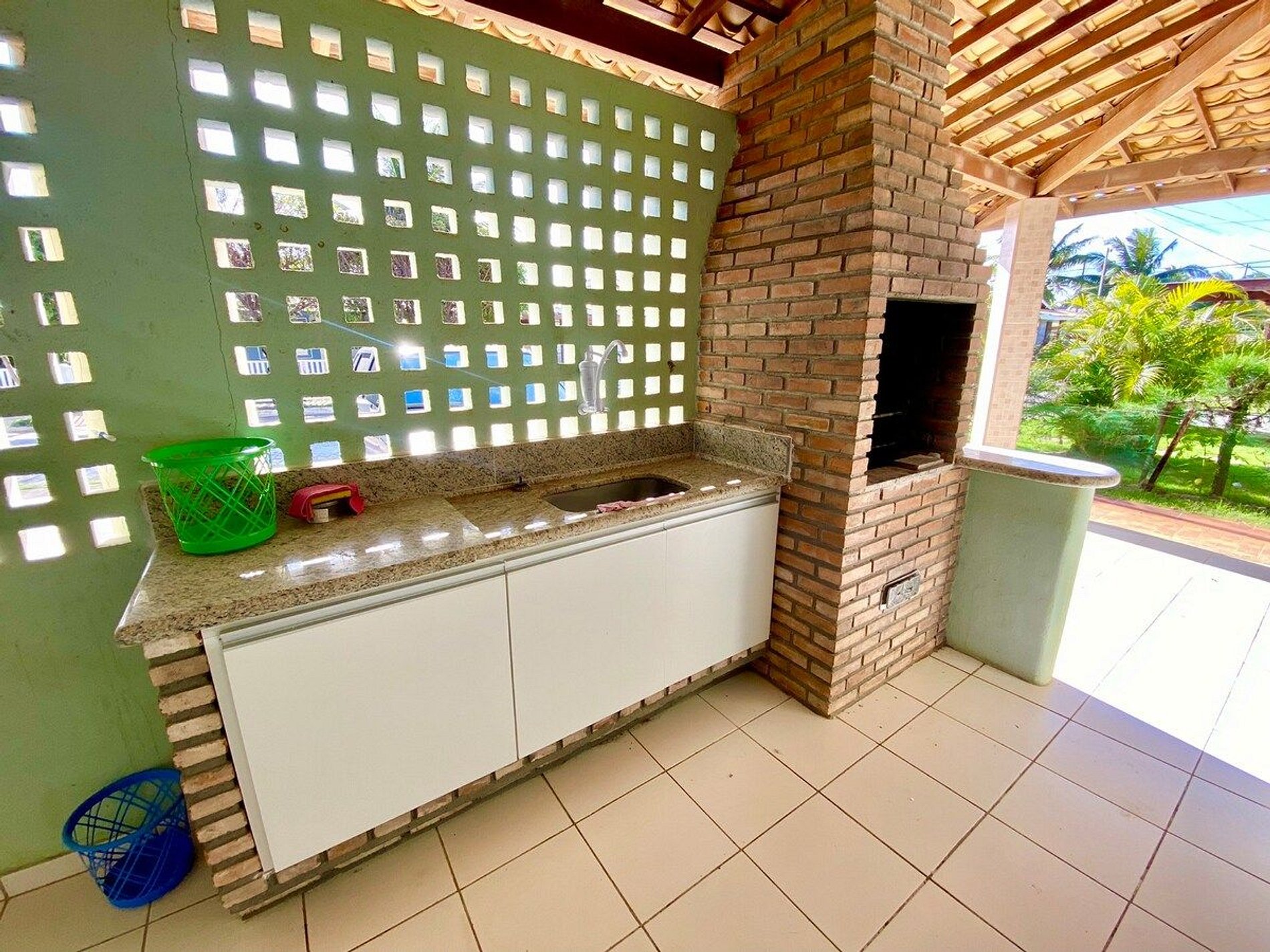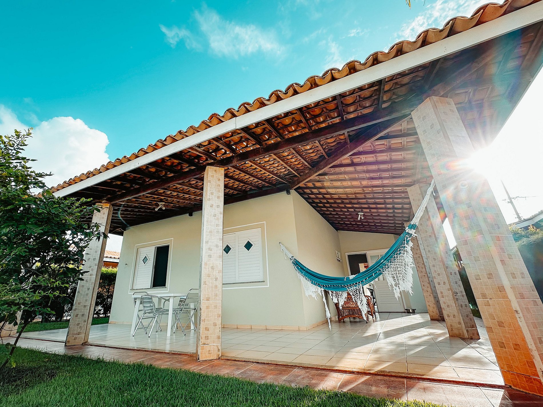 Anexa a casa temos garagem para 3 carros, e nas varandas que circulam a casa estrutura de churrasqueira, pia auxiliar, pia lavanderia, poltronas confortáveis, mesas e cadeiras de plástico, além de redes. Possui ainda lindo jardim com plantas constituindo muros que separam as casas, o que proporciona boa privacidade e harmonia ao ambiente.