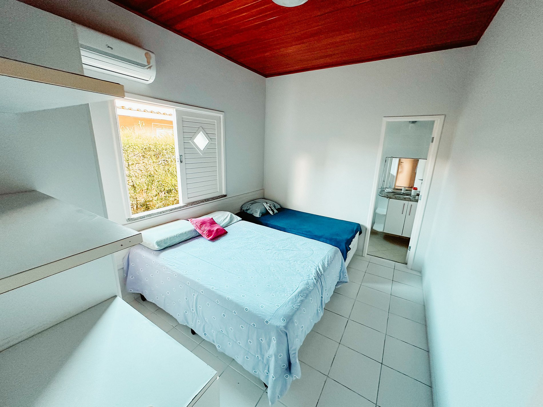 No espaço interno o ambiente é super confortável com três quartos sendo dois suítes. Todos os quartos possuem guarda-roupas. Temos AR-CONDICIONADO NOS TRÊS QUARTOS e ventiladores a disposição na casa. Contamos com uma maravilhosa sala de estar com SOFÁS CONFORTÁVEIS, conjunto de mesa com cadeiras e SMARTV 58’’. Temos ainda uma super cozinha bem arejada e equipada com utensílios básicos necessários para uma ótima estadia, com DUAS GELADEIRAS sendo uma duplex, microondas, filtro de água, armário amplo e adaptado, FOGÃO 6 BOCAS COM FORNO, pia acoplada a balcão. Internamente a casa contamos com o total de TRÊS BANHEIROS completos.