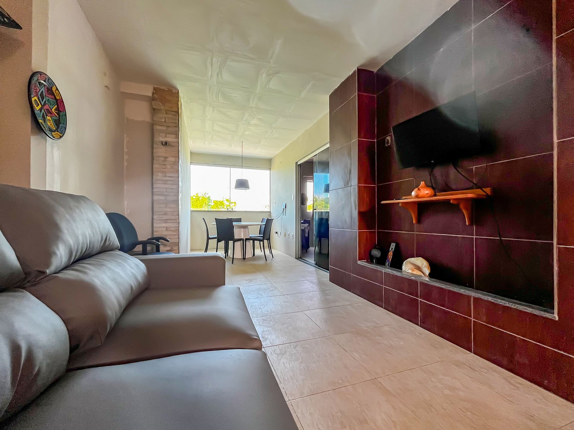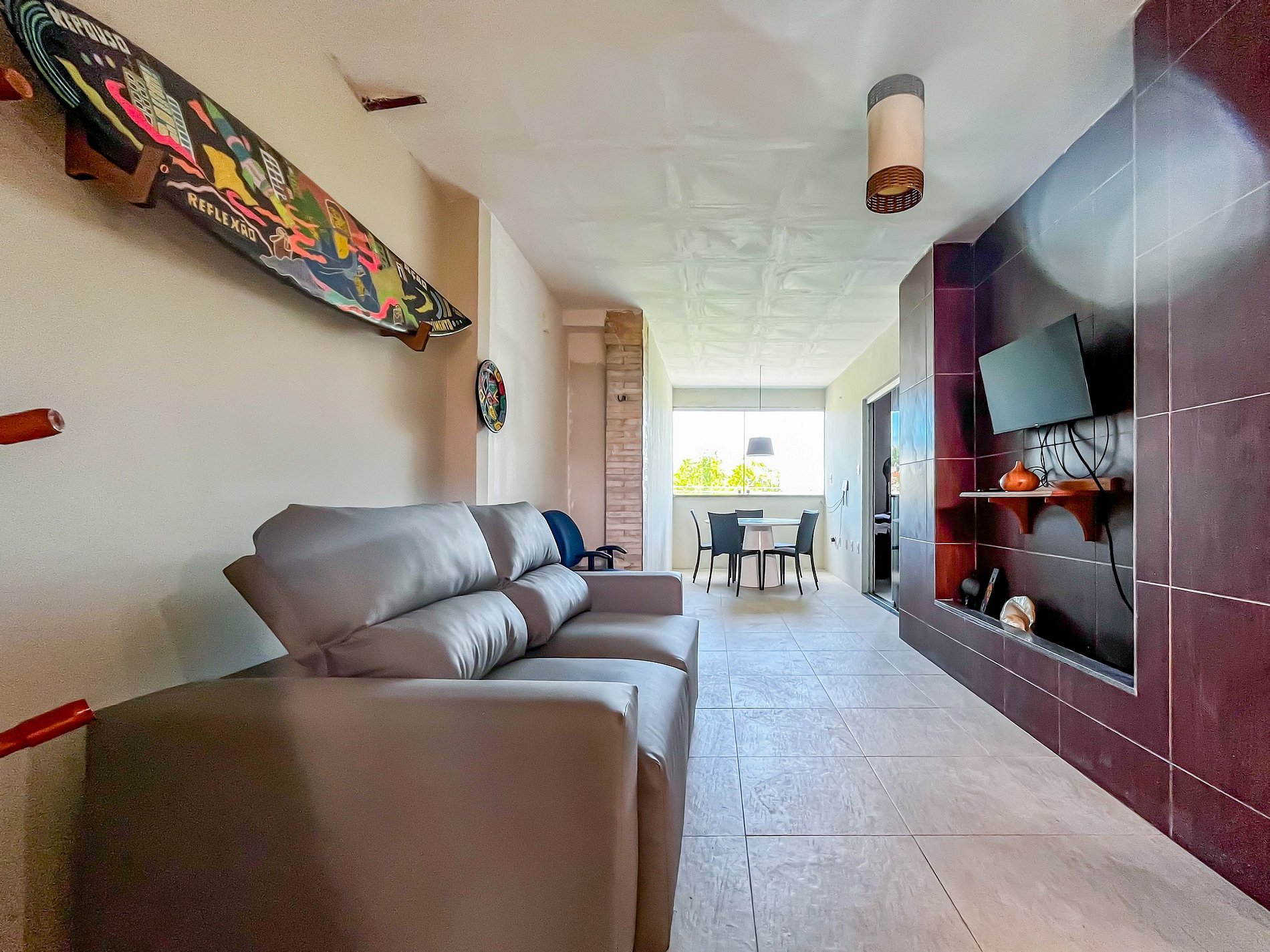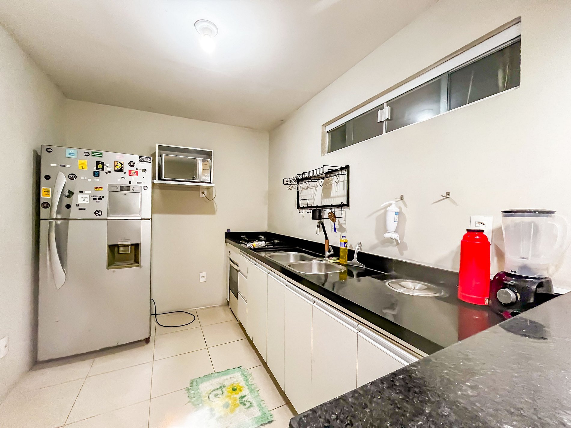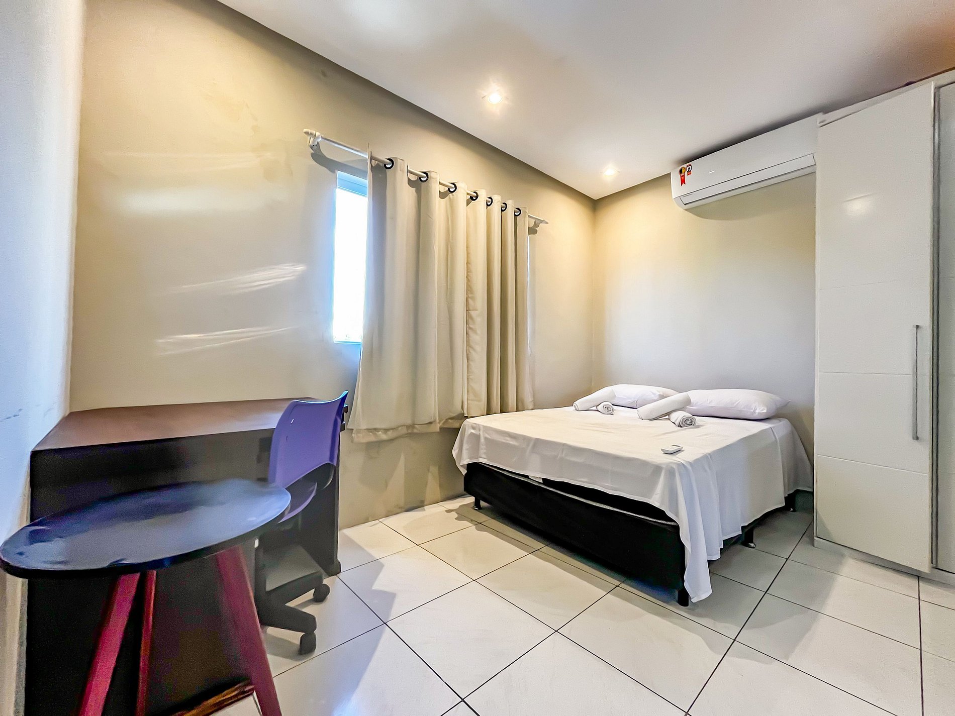 Flat bastante arejado, todo mobiliado. Cozinha totalmente equipada e área de serviço com máquina de lavar roupas. Quarto com cama de casal, beliche, mesa escrivaninha com cadeira ergonômica, guarda-roupas e ar-condicionado. Fica a 5 minutos do aeroporto e a 10 minutos da praia da atalaia, na avenida principal do bairro, sendo bastante seguro.