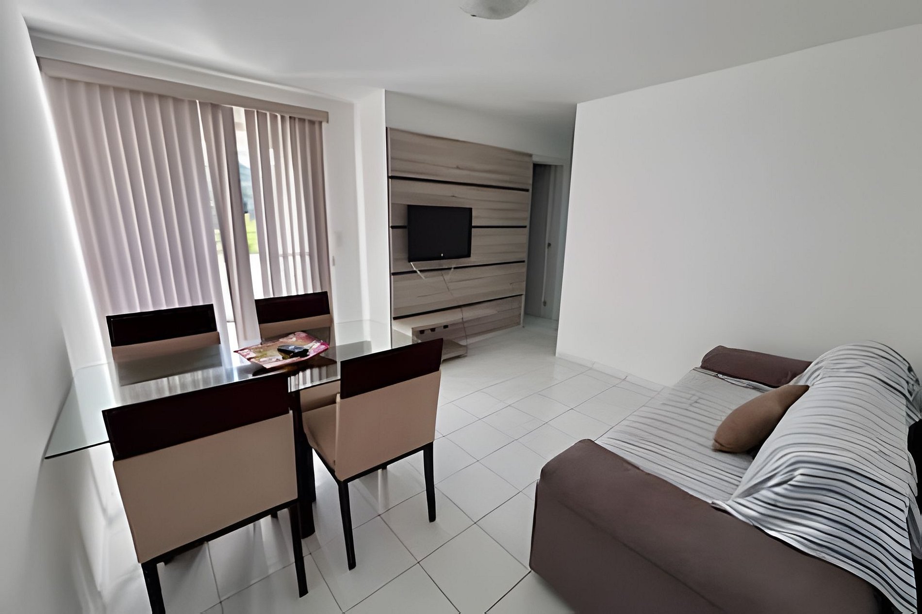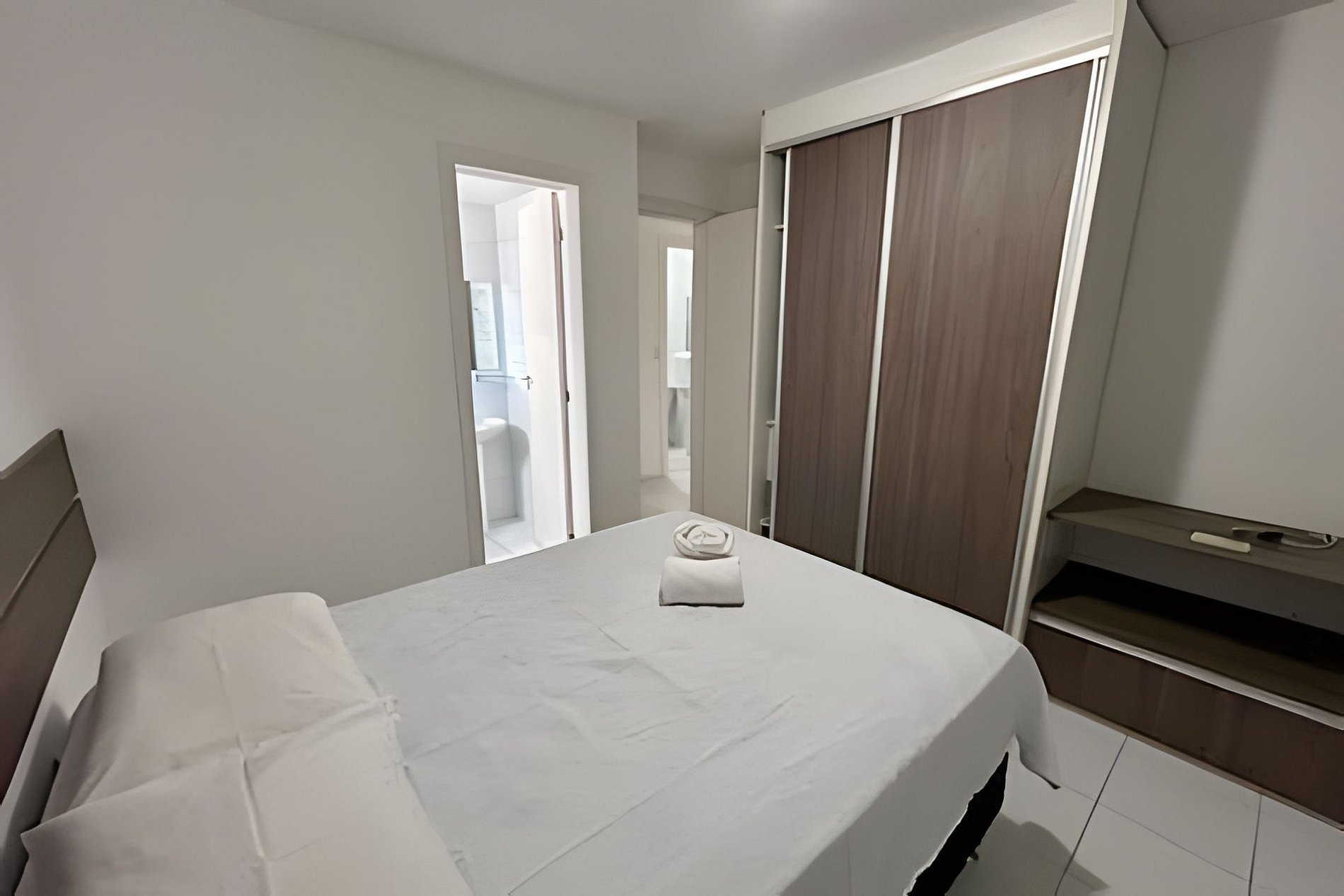 Se trata de um apartamento muito aconchegante. Sala de estar com sofá confortável, mesa e quatros cadeiras, além de TV 32’. Varanda com pia e sacada com cortina de vidro. Temos três quartos, todos com cama casal, sendo dois quartos com ar-condicionado e guarda roupas, um deles suíte. Cozinha e área de serviço completas com todos os utensílios necessários para uma estadia tranquila. Os dois banheiros possuem chuveiro elétrico. Uma vaga de garagem a disposição e condomínio com opções de lazer para adultos e crianças.