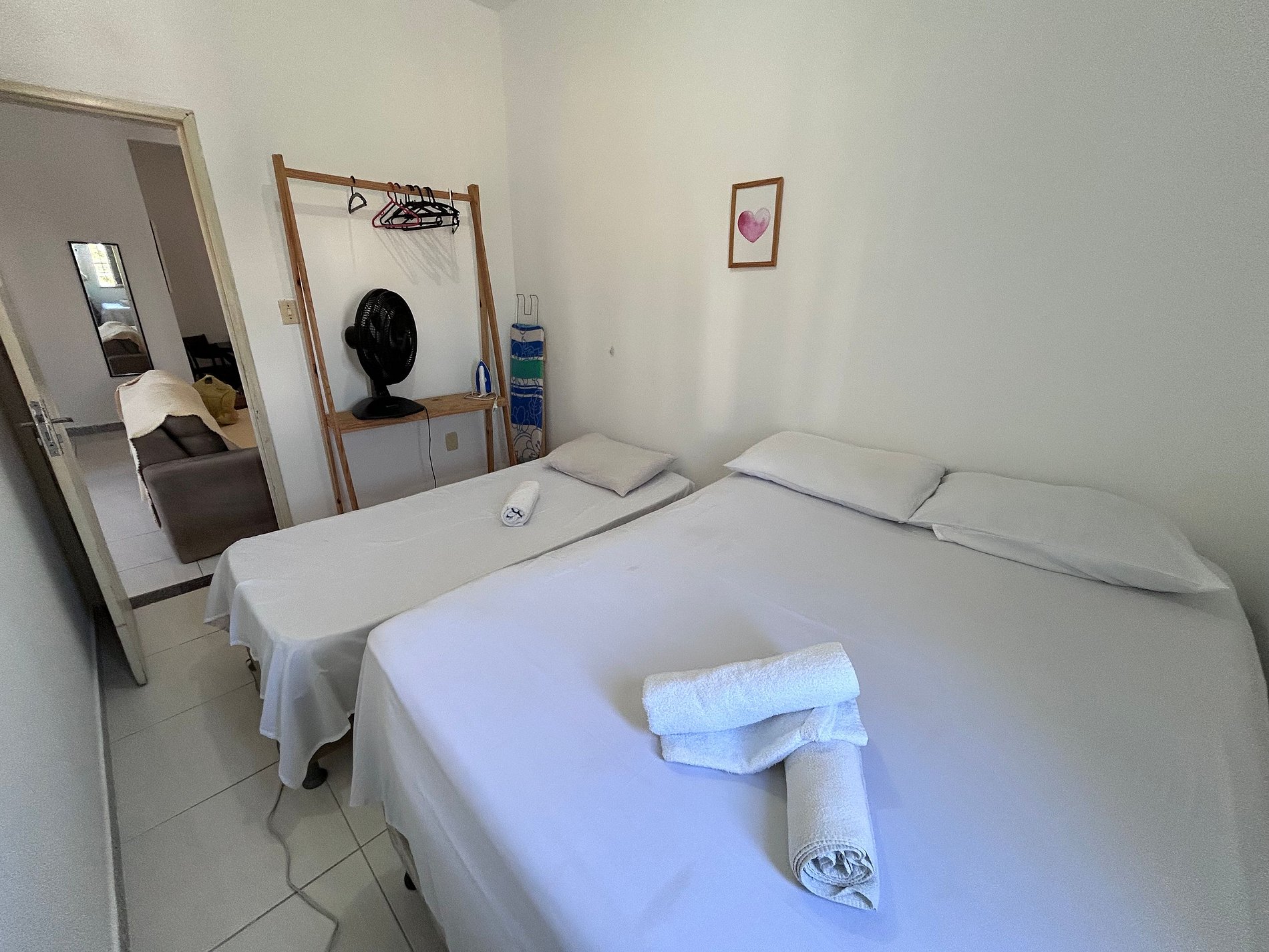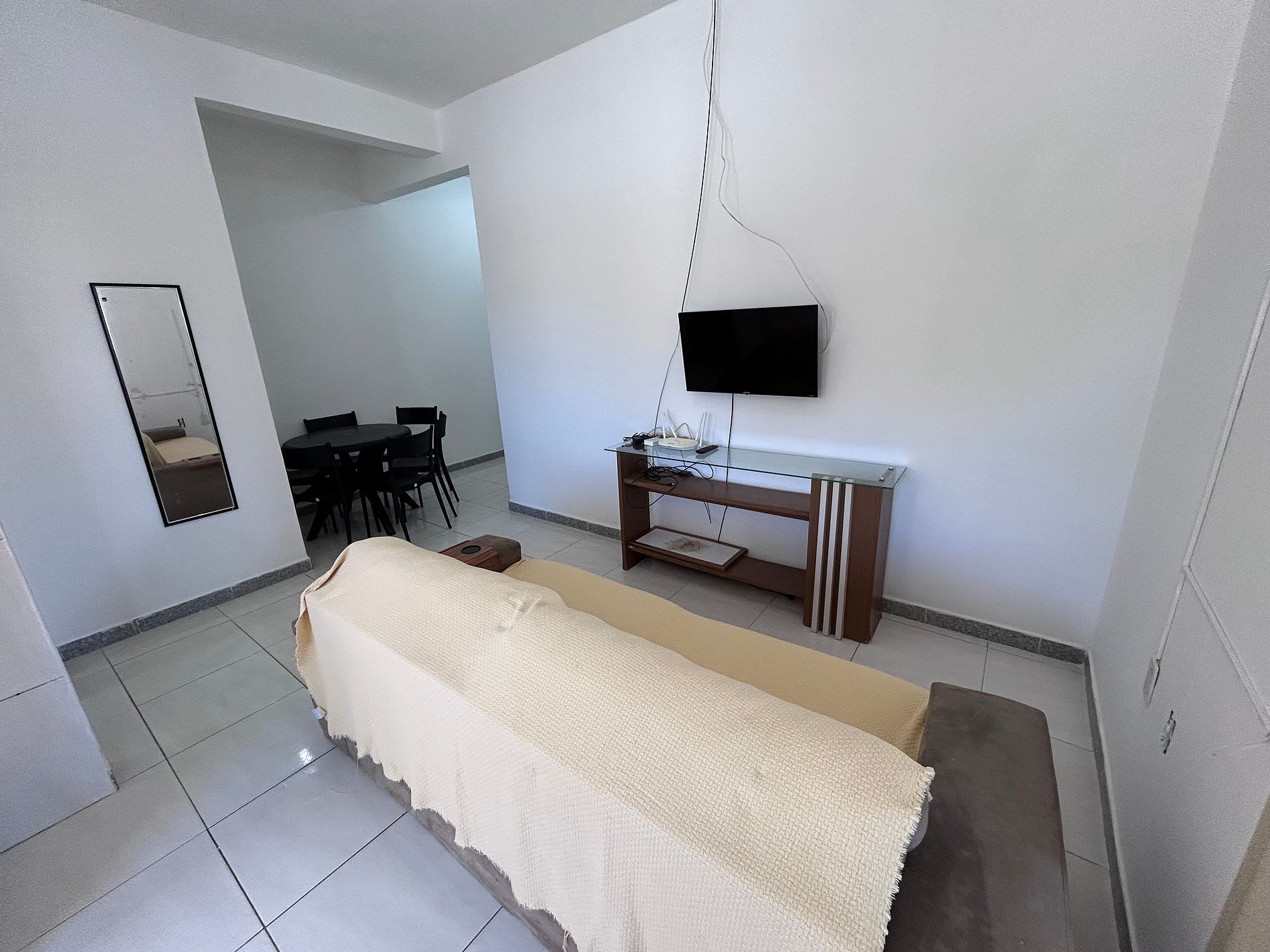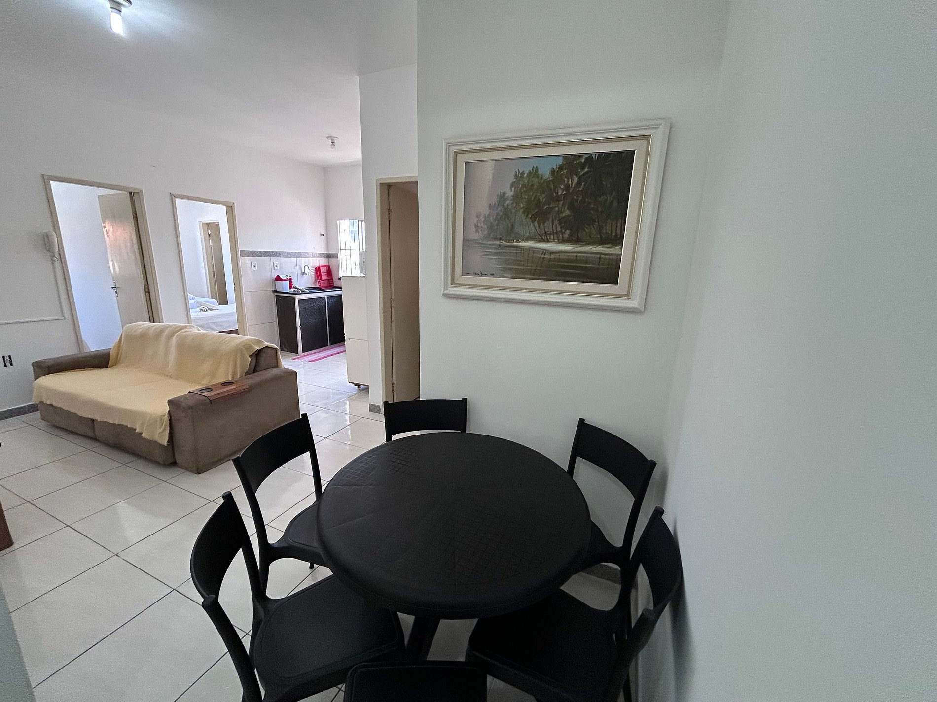 O espaço é composto por sala de estar integrada com a cozinha tendo sofa retrátil, mesa com 6 cadeiras confortáveis de serviço anexa e banheiro social. Possui ainda dois quartos, sendo um com lavabo e ar-condicionado. Disponibiliza-se ventilador. Temos uma cama de casal e uma de solteiro em cada quarto. O imóvel está localizado no Residencial Morar Bem, sendo bastante tranquilo e perfeito para passar uma bela temporada.