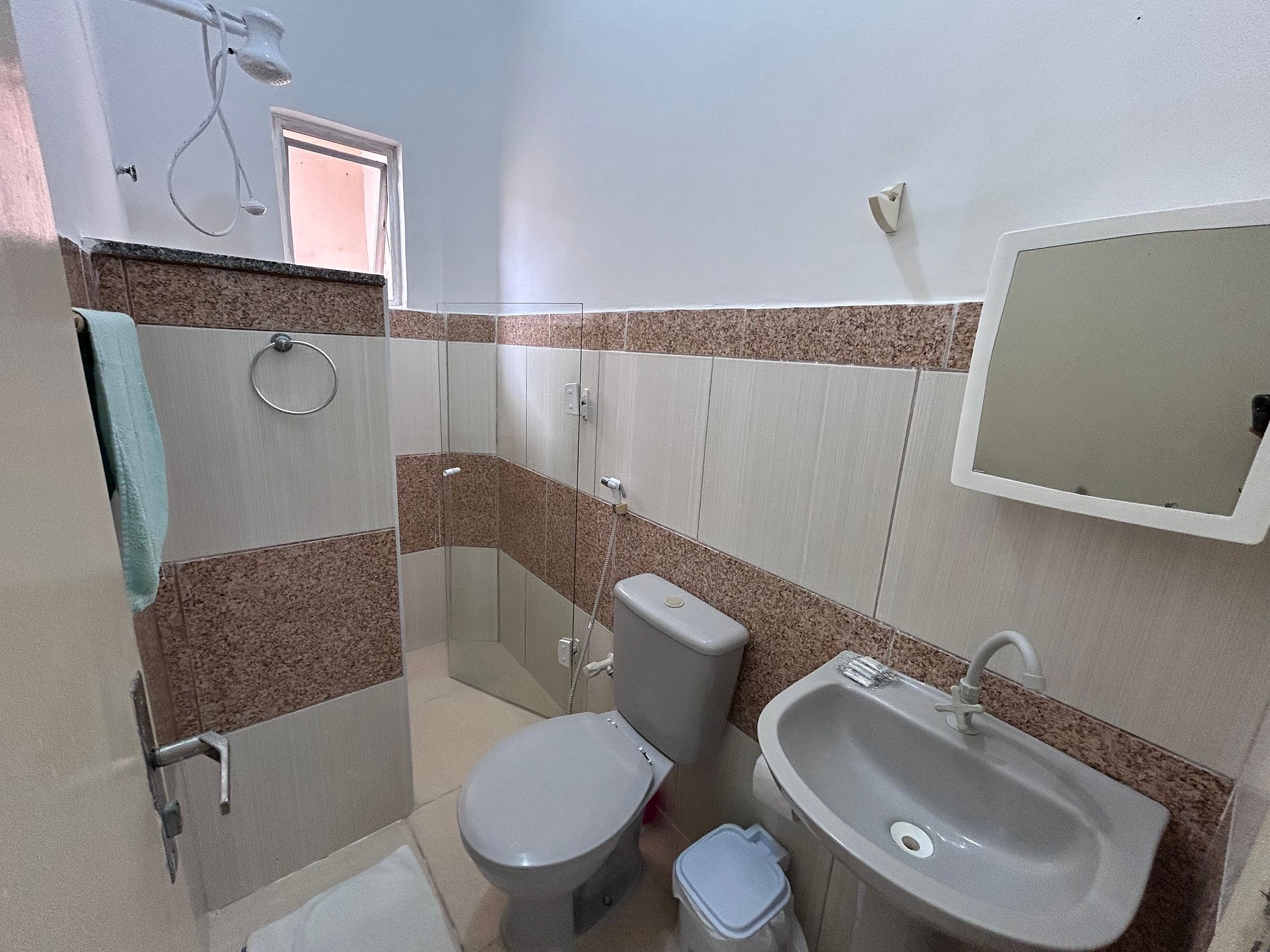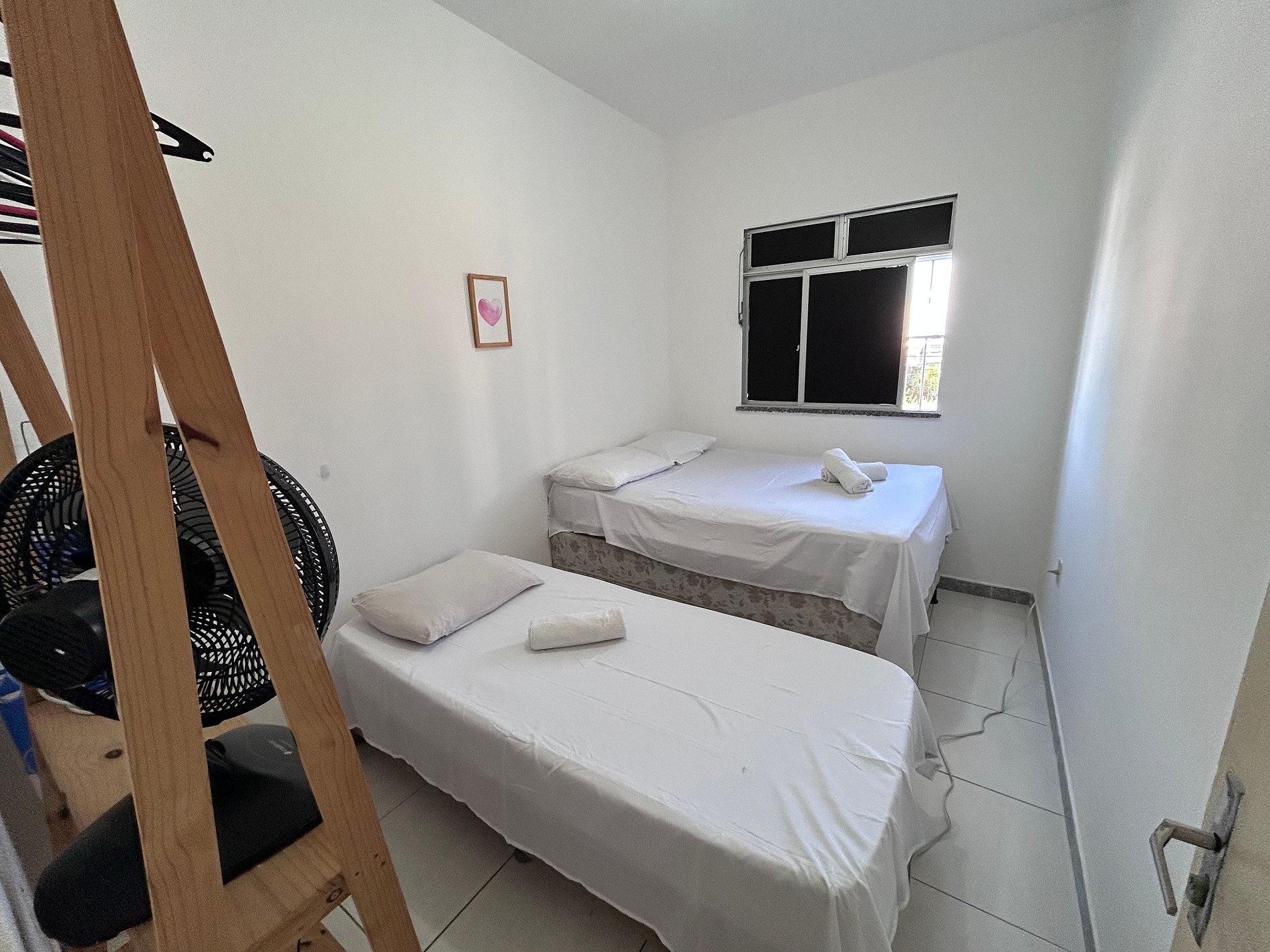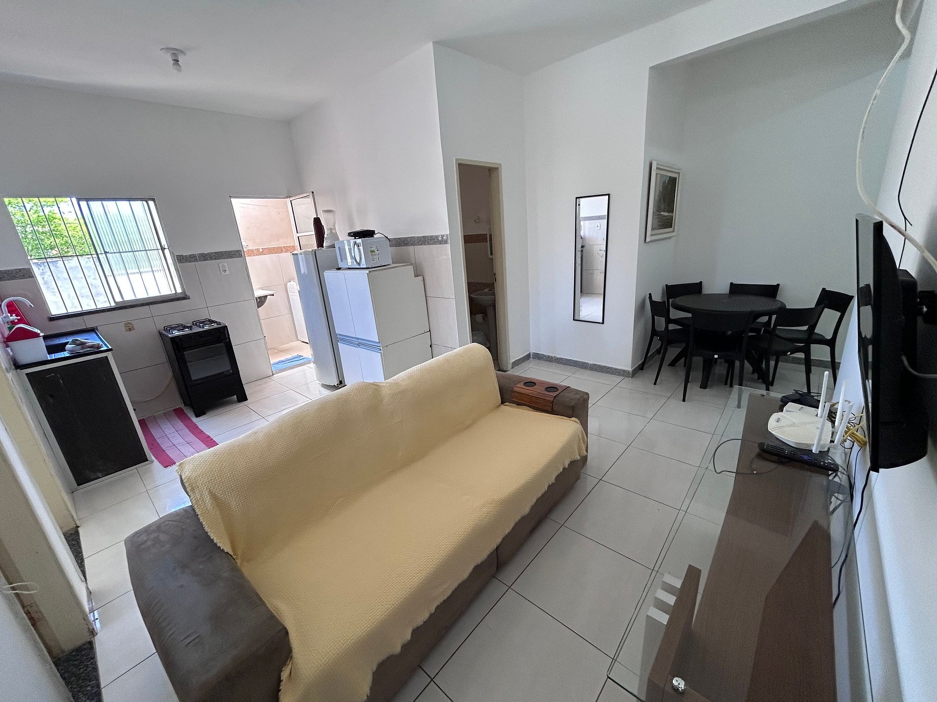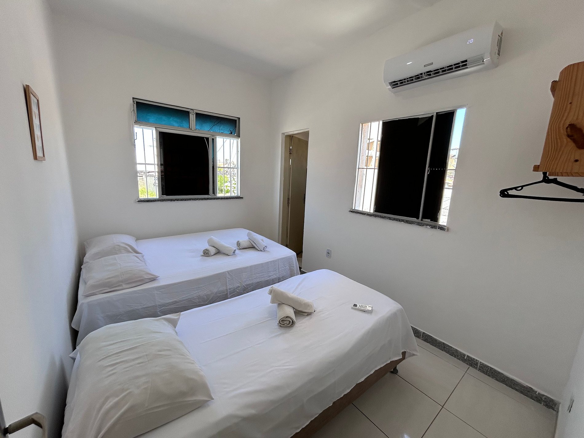 O espaço é composto por sala de estar integrada com a cozinha tendo sofa retrátil, mesa com 6 cadeiras confortáveis de serviço anexa e banheiro social. Possui ainda dois quartos, sendo um com lavabo e ar-condicionado. Disponibiliza-se ventilador. Temos uma cama de casal e uma de solteiro em cada quarto. O imóvel está localizado no Residencial Morar Bem, sendo bastante tranquilo e perfeito para passar uma bela temporada.