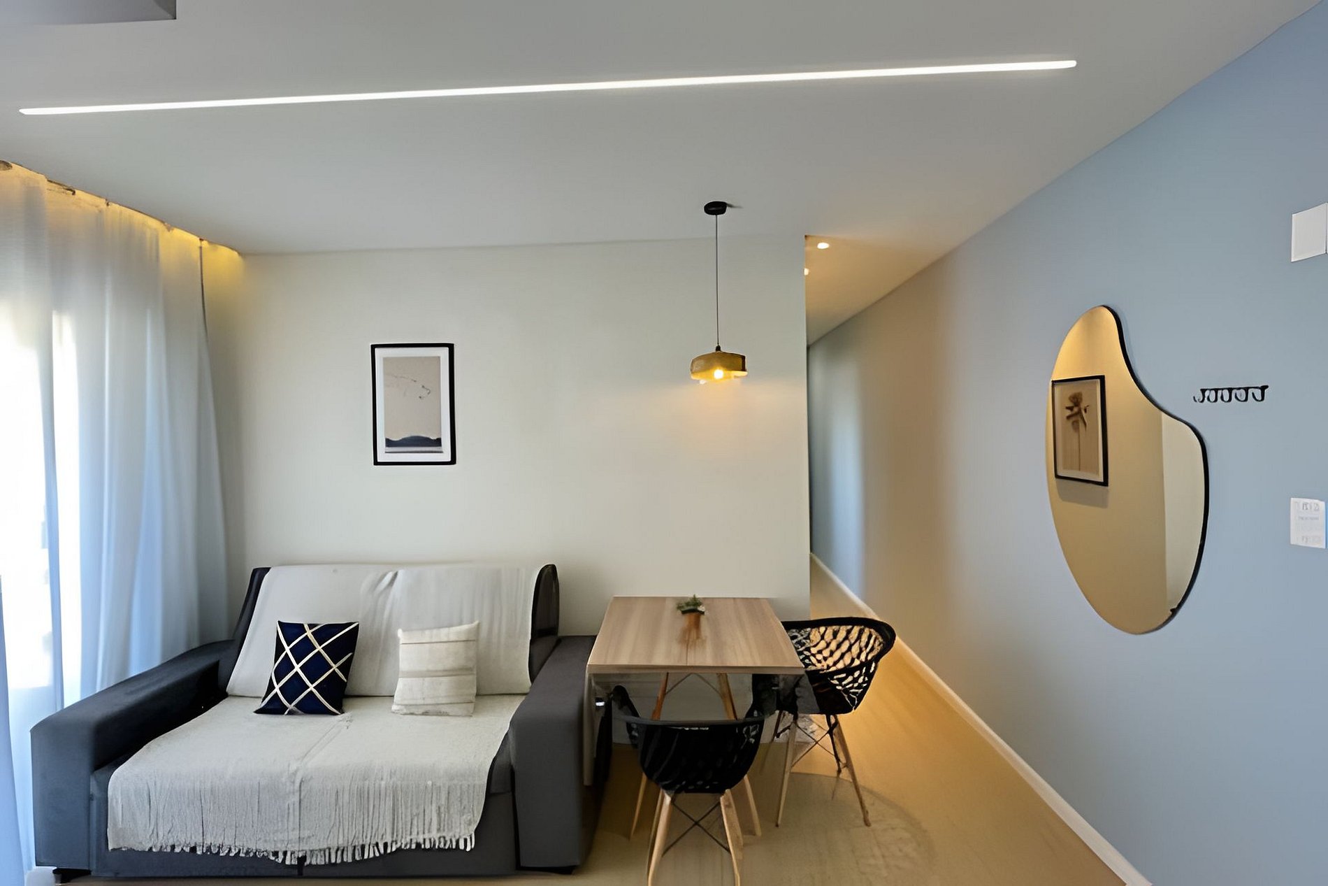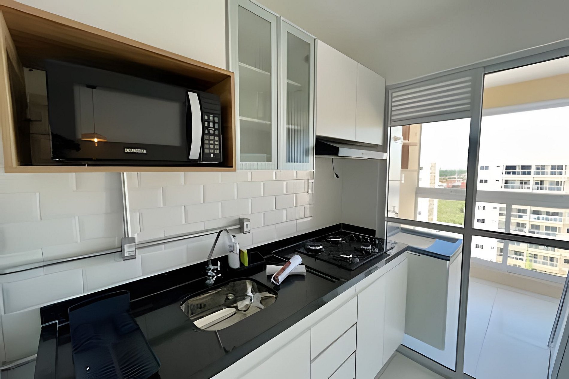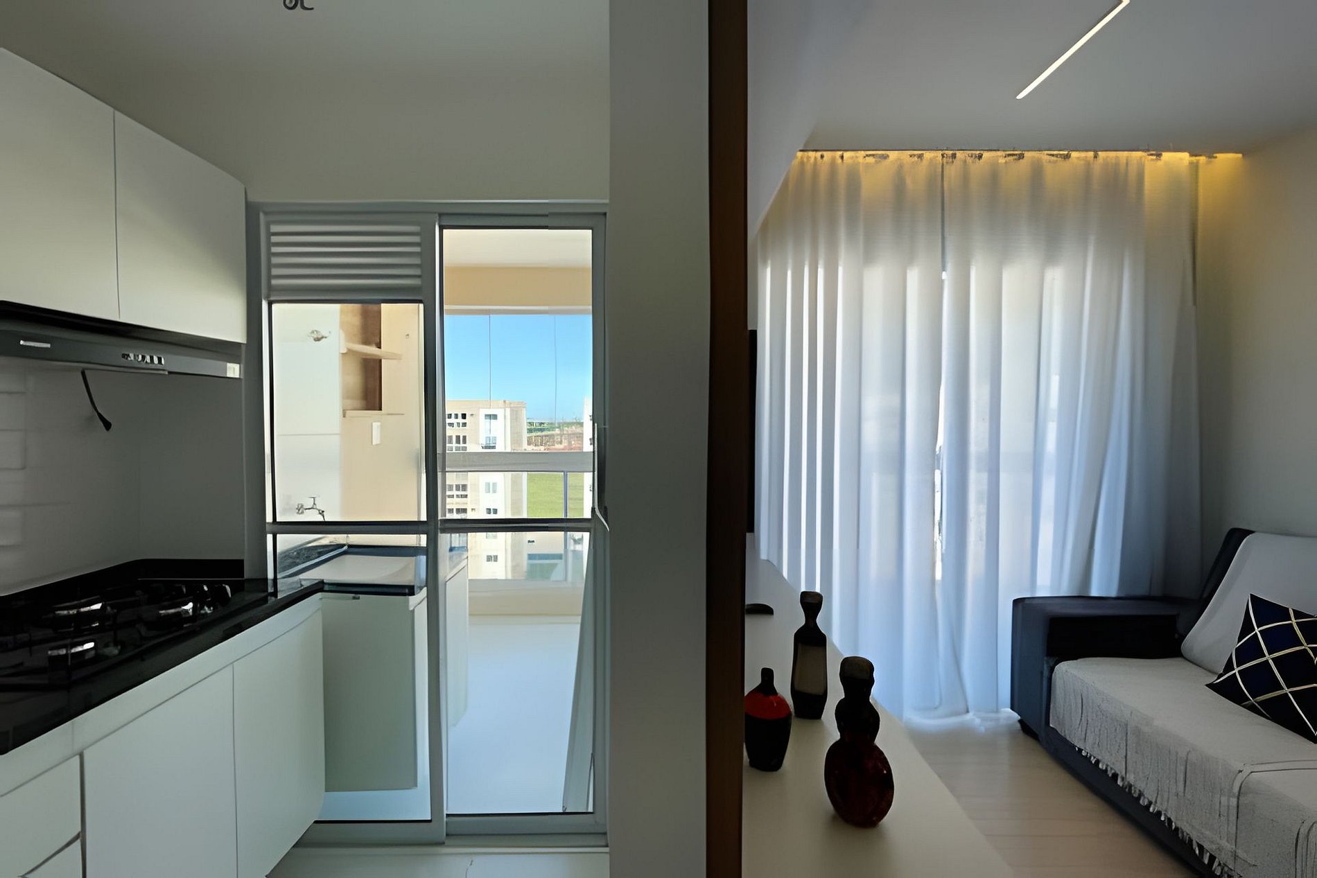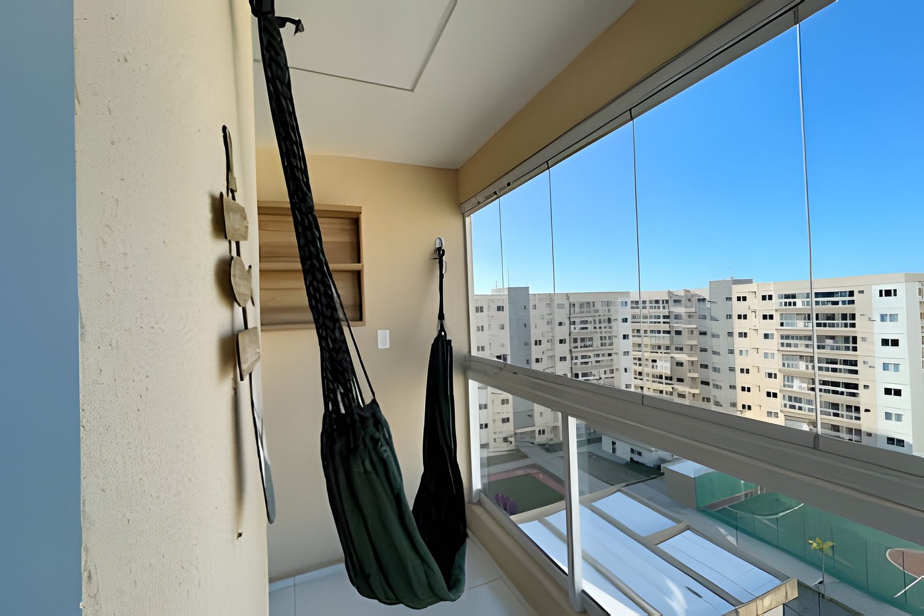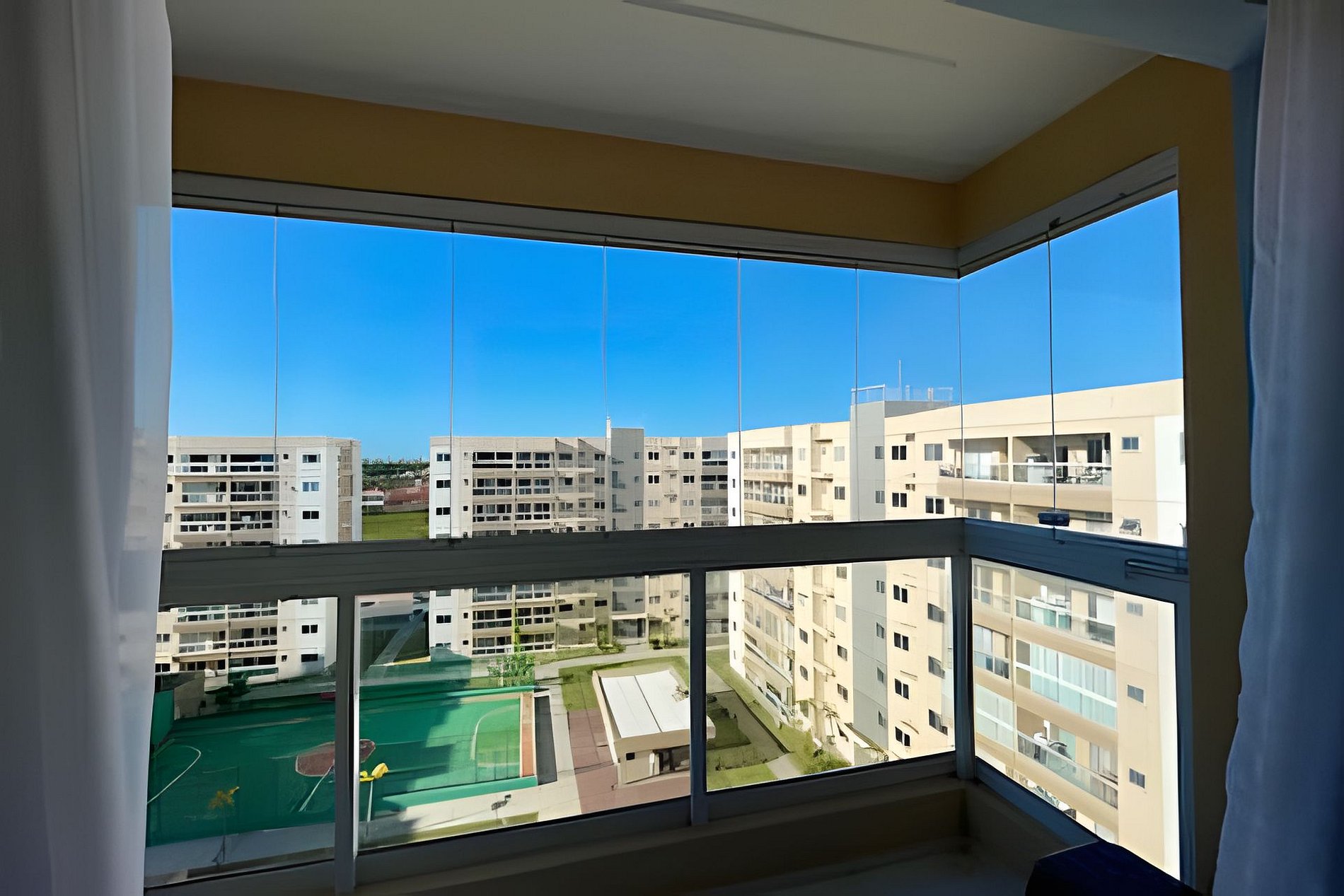 Se trata de um apartamento muito aconchegante e estiloso. Sala de estar com sofá-cama, mesa e duas cadeiras, além de TV smart 32’. Varanda com armação para rede e sacada com cortina de vidro. Temos dois quartos sendo um deles com cama de casal, ar-condicionado e guarda roupas. O segundo quarto conta com duas camas de solteiro e ventilador portátil. Cozinha e área de serviço completas com todos os utensílios necessários para uma estadia tranquila. Temos um banheiro social com chuveiro elétrico. Uma vaga de garagem a disposição e condomínio com diversas opções de lazer para adultos e crianças.