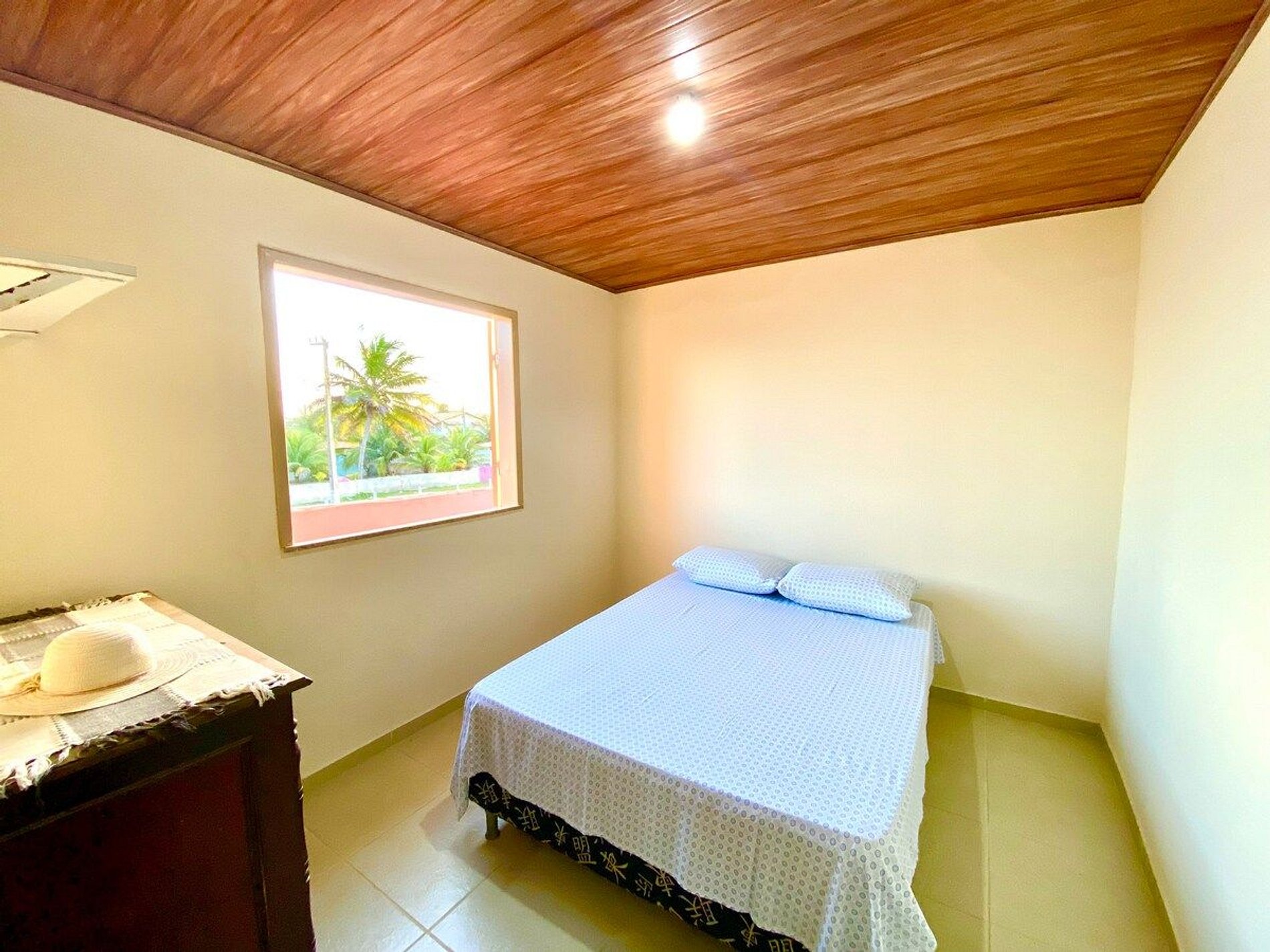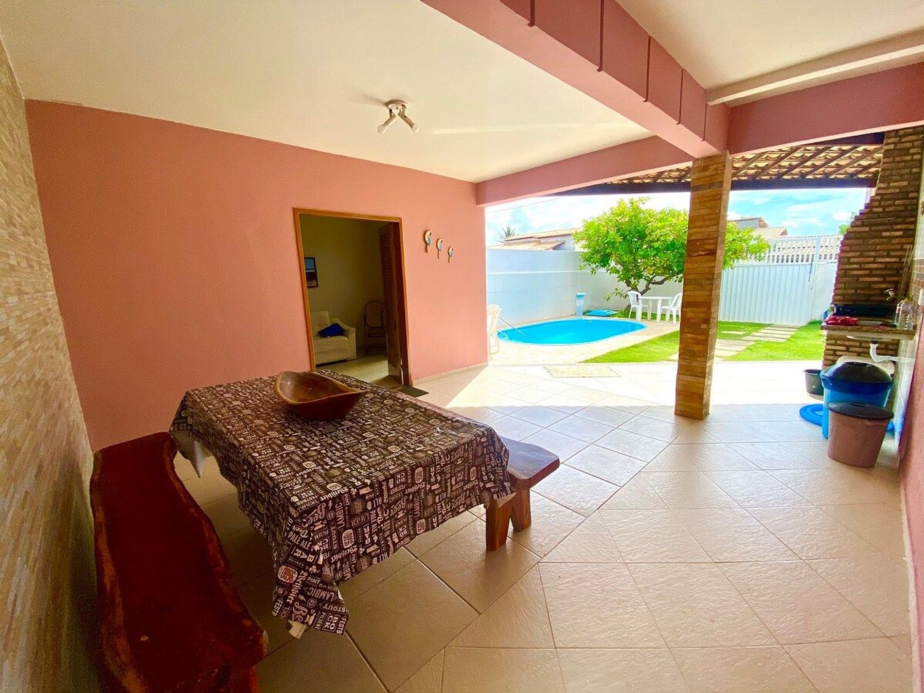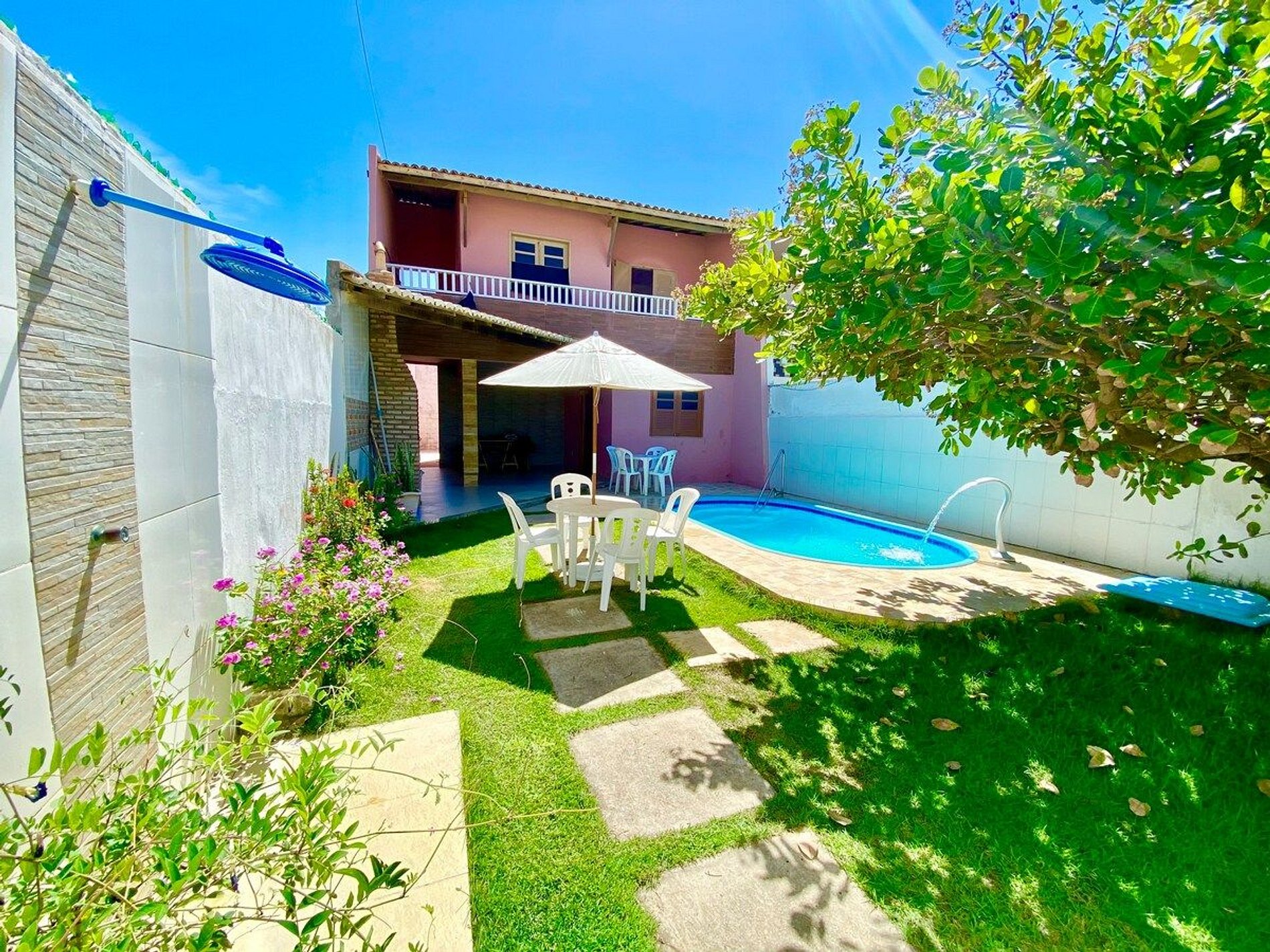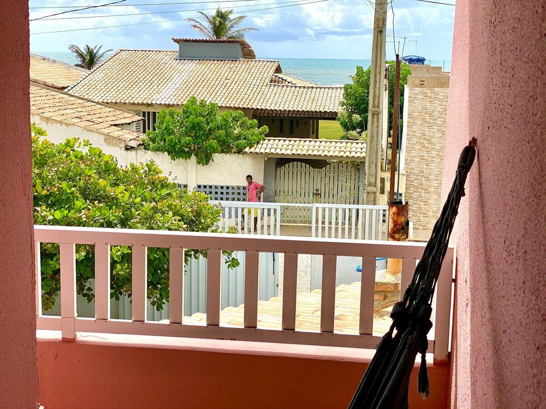 A casa fica a 50 passos do mar. Tem piscina e churrasqueira pequena. Ampla e bem arejada. Tão arejada que nem usamos ar condicionado. Todas as janelas da parte de cima da casa tem vista para o mar. A casa possui três quartos sendo um suíte e com cama de casal. No segundo quarto temos uma cama de casal e uma cama de solteiro. No terceiro quarto temos uma cama de casal. Dispomos na casa ainda um colchão casal e dois colchões solteiro. Todos os quartos possuem ventiladores. Três banheiros no total. Sala de estar com TV Smart e sofá confortável. Sombreiro mesas e cadeiras a disposição.
