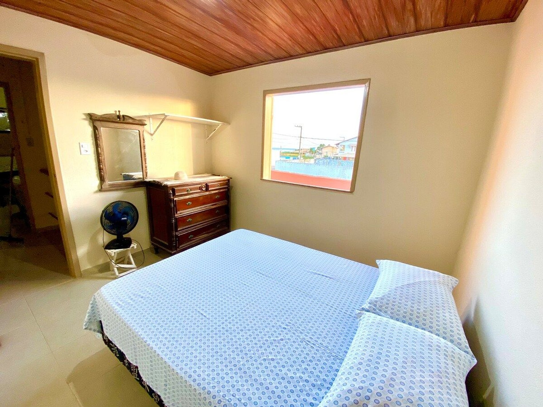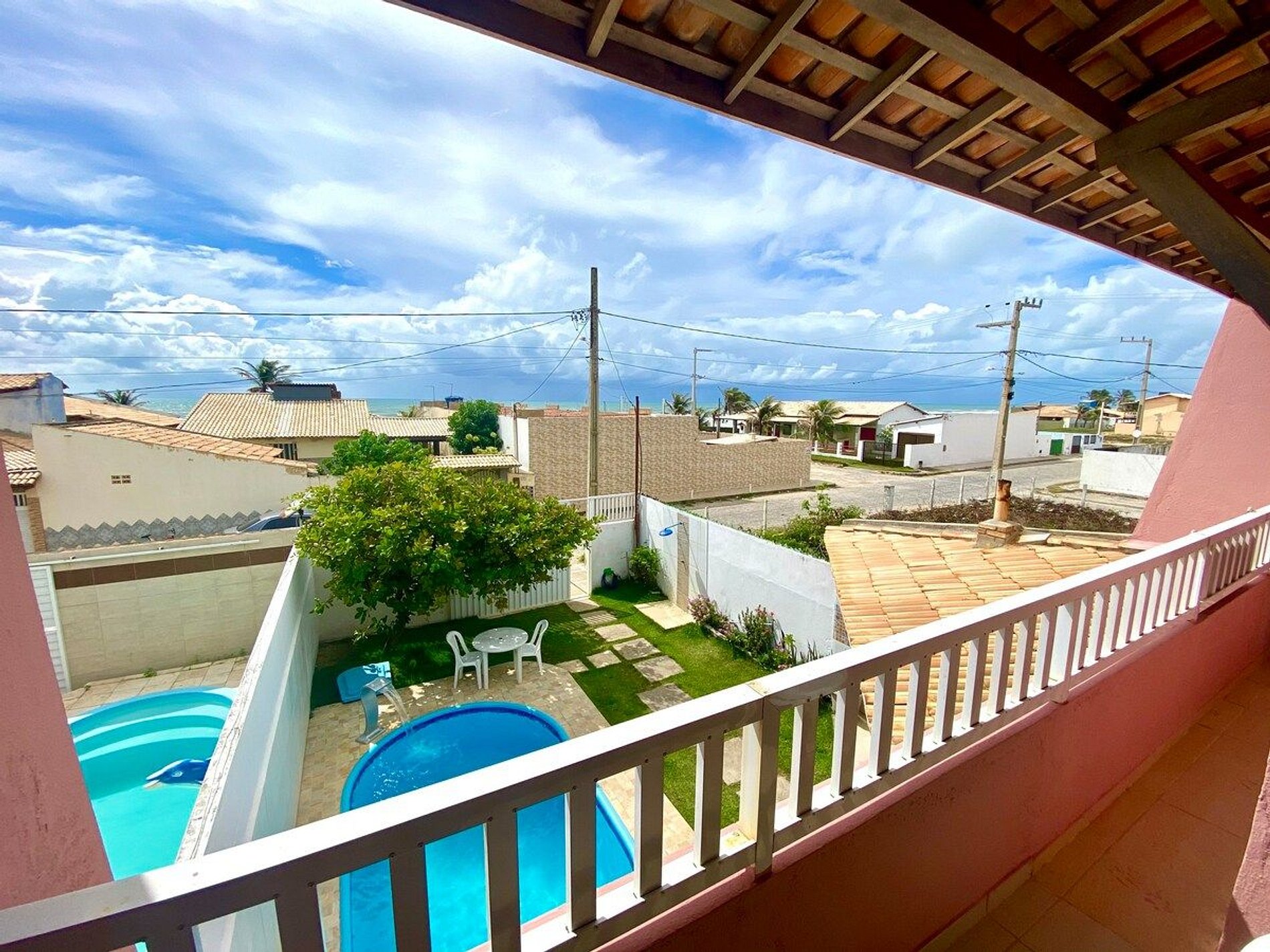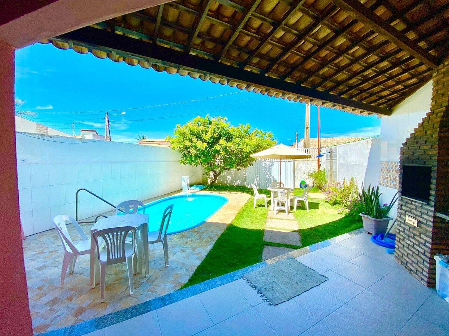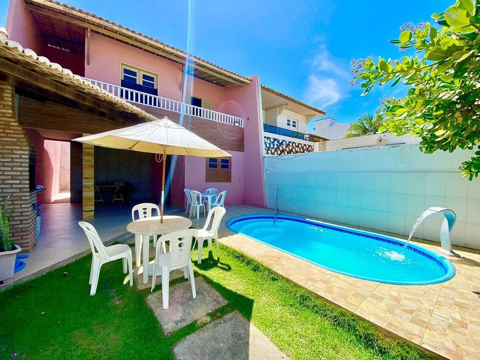 A casa fica a 50 passos do mar. Tem piscina e churrasqueira pequena. Ampla e bem arejada. Tão arejada que nem usamos ar condicionado. Todas as janelas da parte de cima da casa tem vista para o mar. A casa possui três quartos sendo um suíte e com cama de casal. No segundo quarto temos uma cama de casal e uma cama de solteiro. No terceiro quarto temos uma cama de casal. Dispomos na casa ainda um colchão casal e dois colchões solteiro. Todos os quartos possuem ventiladores. Três banheiros no total. Sala de estar com TV Smart e sofá confortável. Sombreiro mesas e cadeiras a disposição.