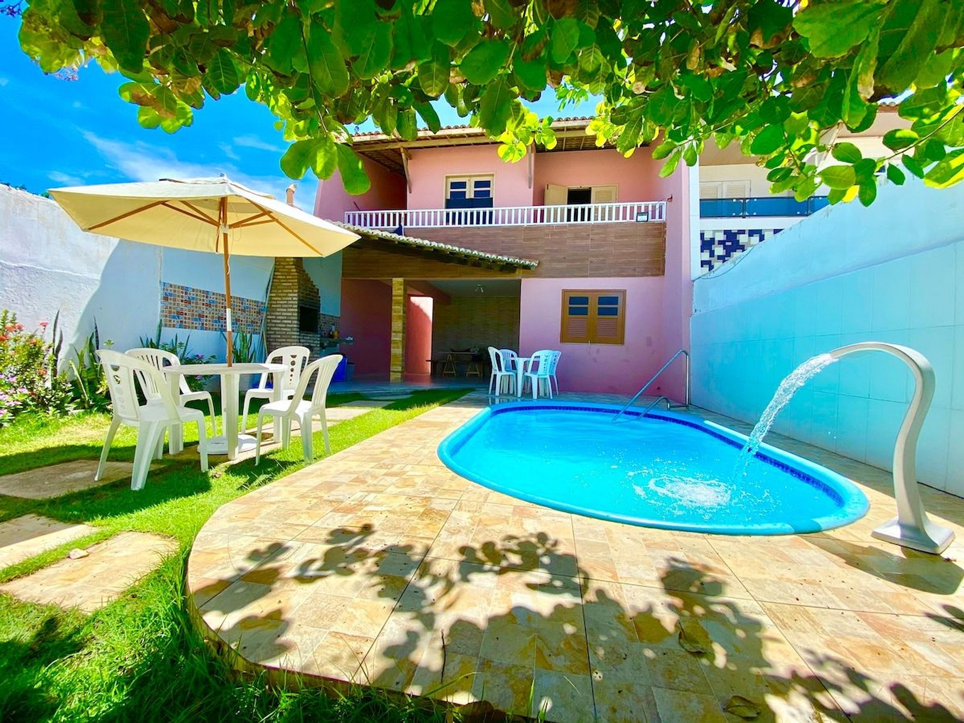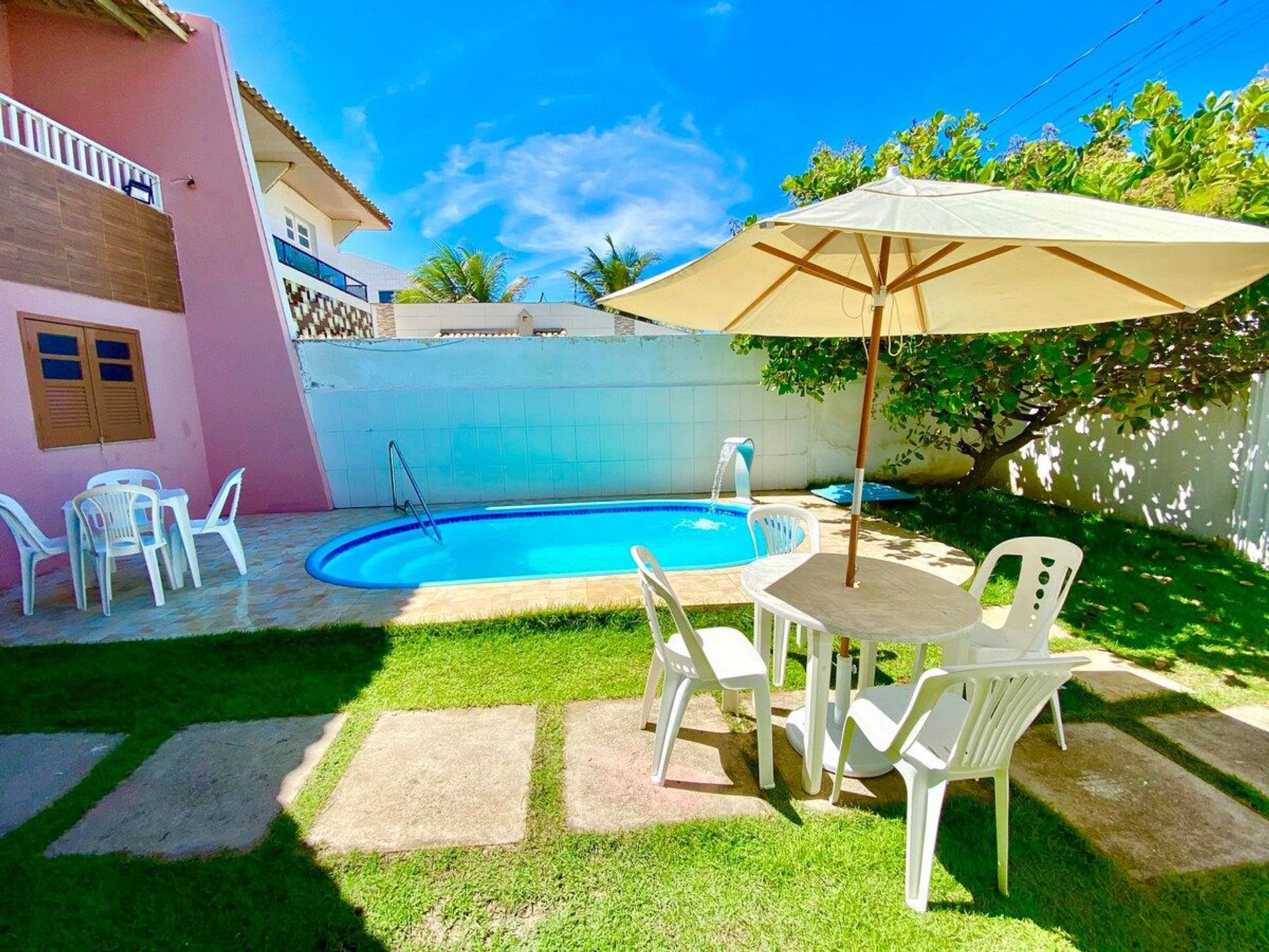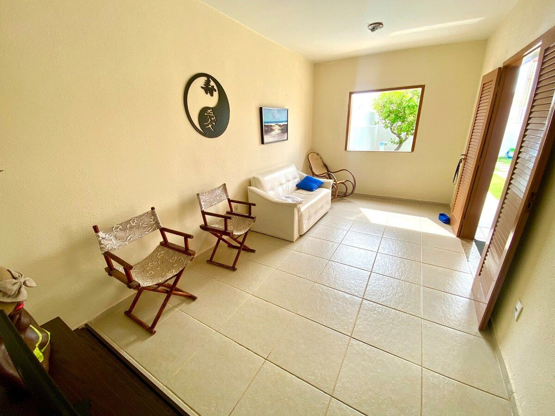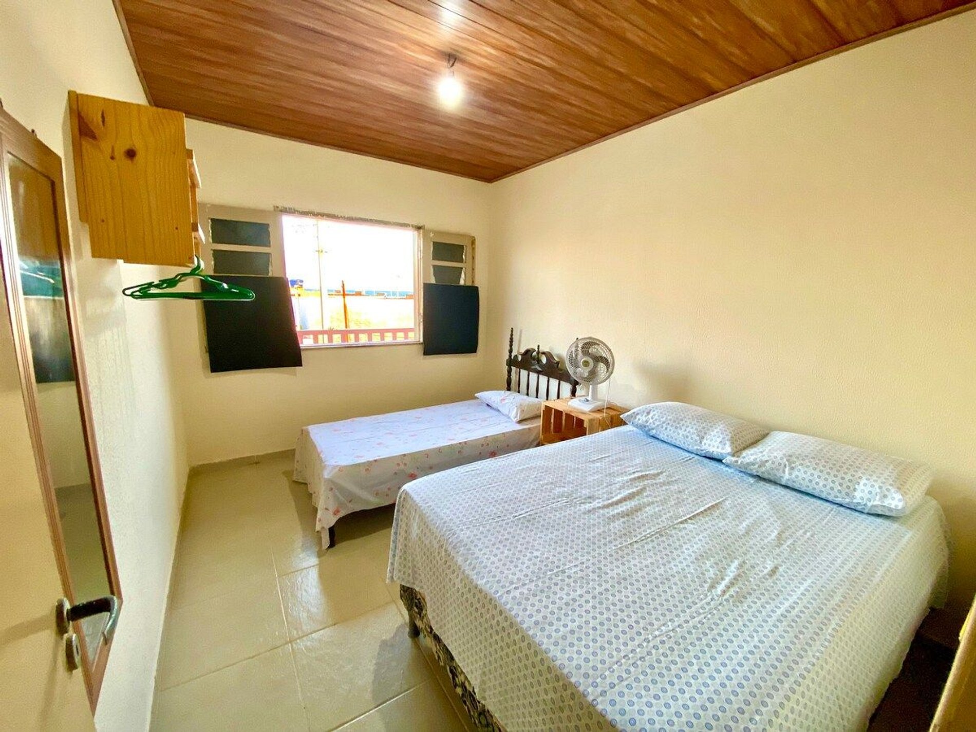 A casa fica a 50 passos do mar. Tem piscina e churrasqueira pequena. Ampla e bem arejada. Tão arejada que nem usamos ar condicionado. Todas as janelas da parte de cima da casa tem vista para o mar. A casa possui três quartos sendo um suíte e com cama de casal. No segundo quarto temos uma cama de casal e uma cama de solteiro. No terceiro quarto temos uma cama de casal. Dispomos na casa ainda um colchão casal e dois colchões solteiro. Todos os quartos possuem ventiladores. Três banheiros no total. Sala de estar com TV Smart e sofá confortável. Sombreiro mesas e cadeiras a disposição.