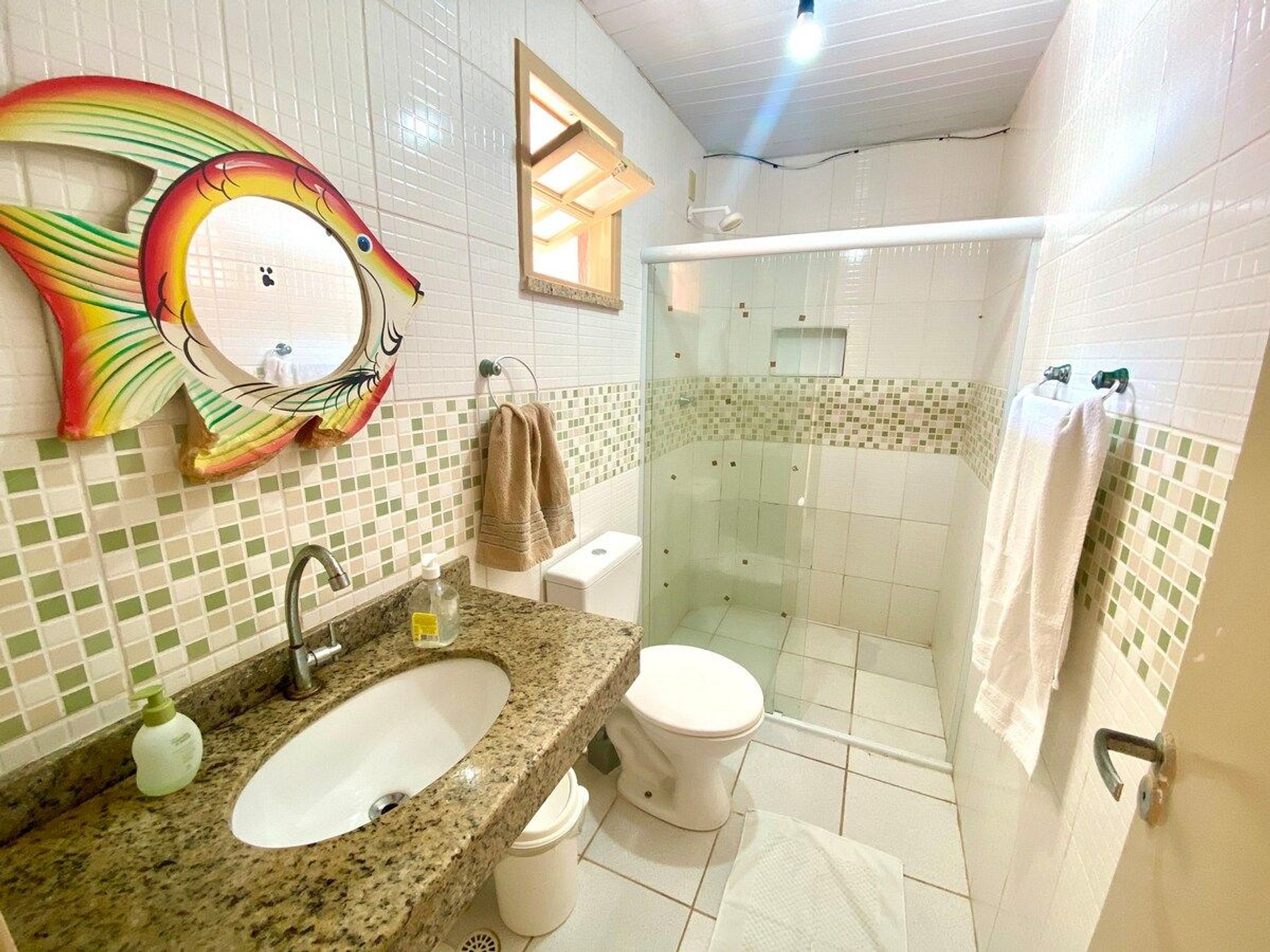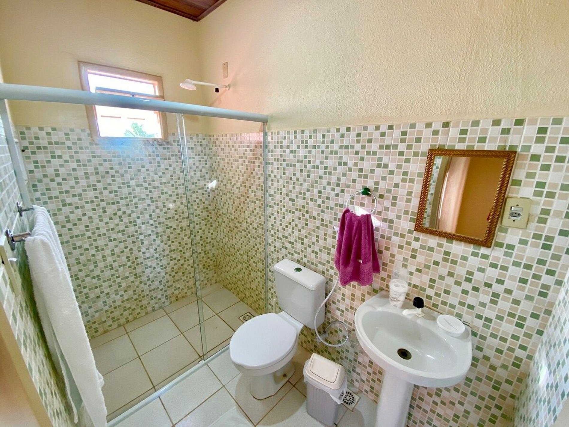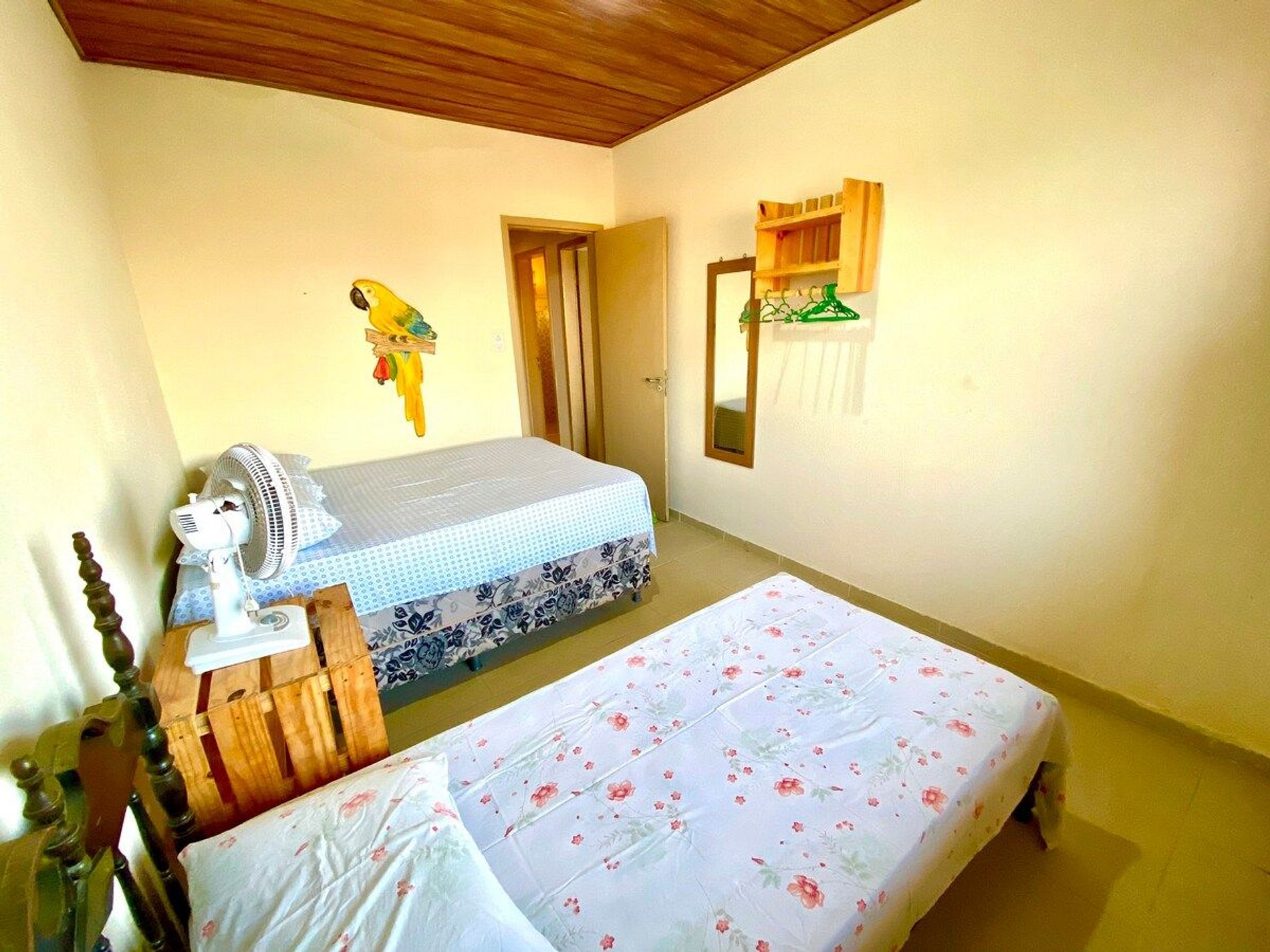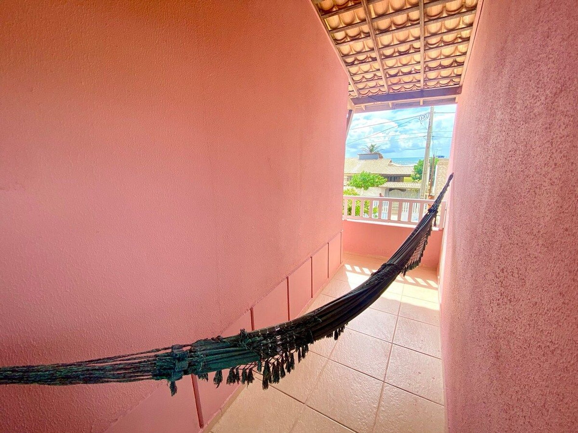 A casa fica a 50 passos do mar. Tem piscina e churrasqueira pequena. Ampla e bem arejada. Tão arejada que nem usamos ar condicionado. Todas as janelas da parte de cima da casa tem vista para o mar. A casa possui três quartos sendo um suíte e com cama de casal. No segundo quarto temos uma cama de casal e uma cama de solteiro. No terceiro quarto temos uma cama de casal. Dispomos na casa ainda um colchão casal e dois colchões solteiro. Todos os quartos possuem ventiladores. Três banheiros no total. Sala de estar com TV Smart e sofá confortável. Sombreiro mesas e cadeiras a disposição.