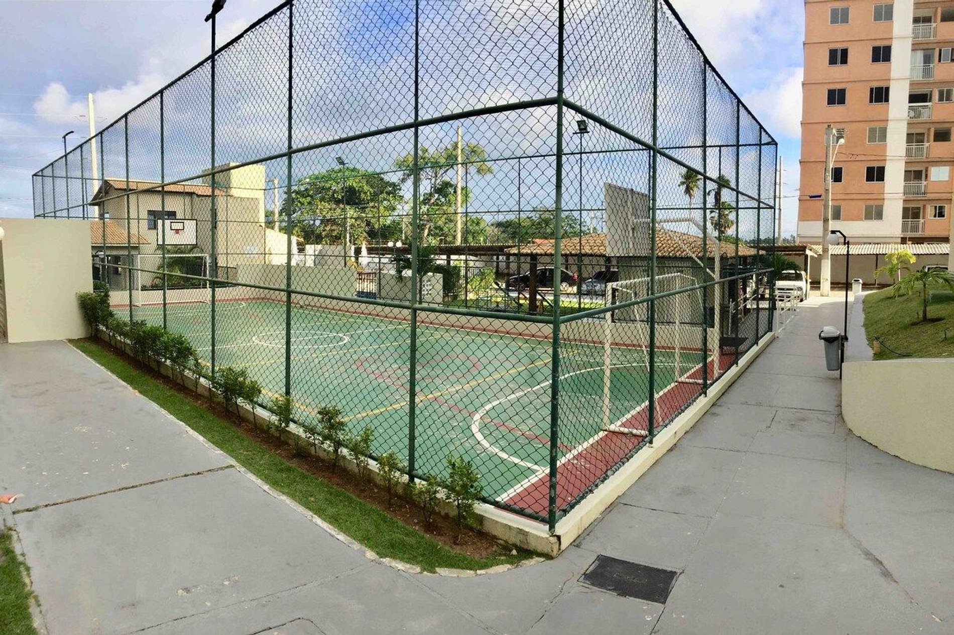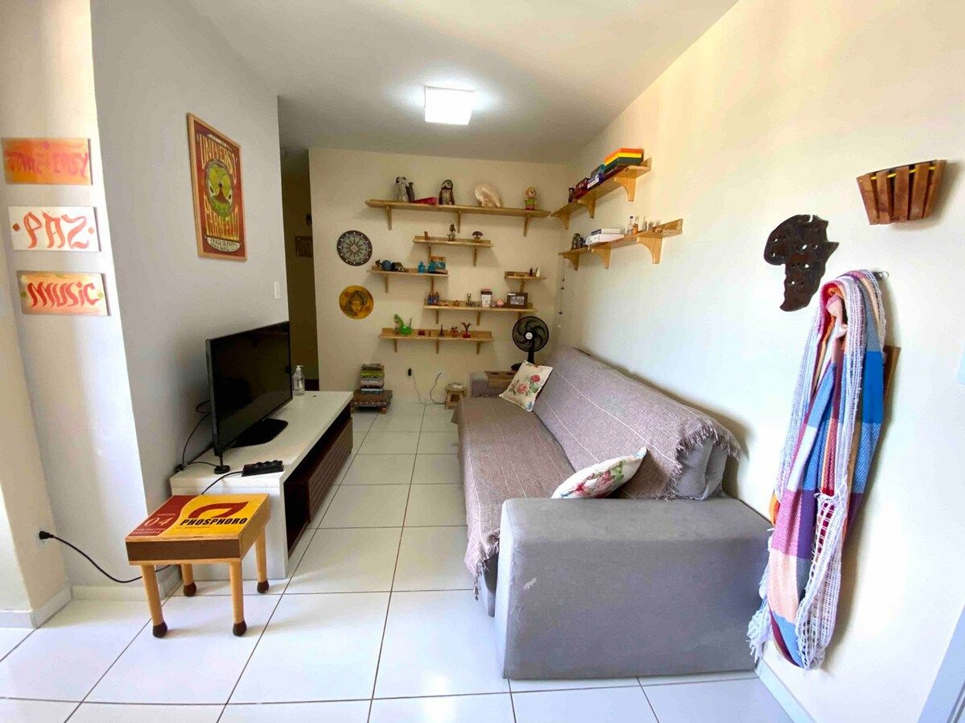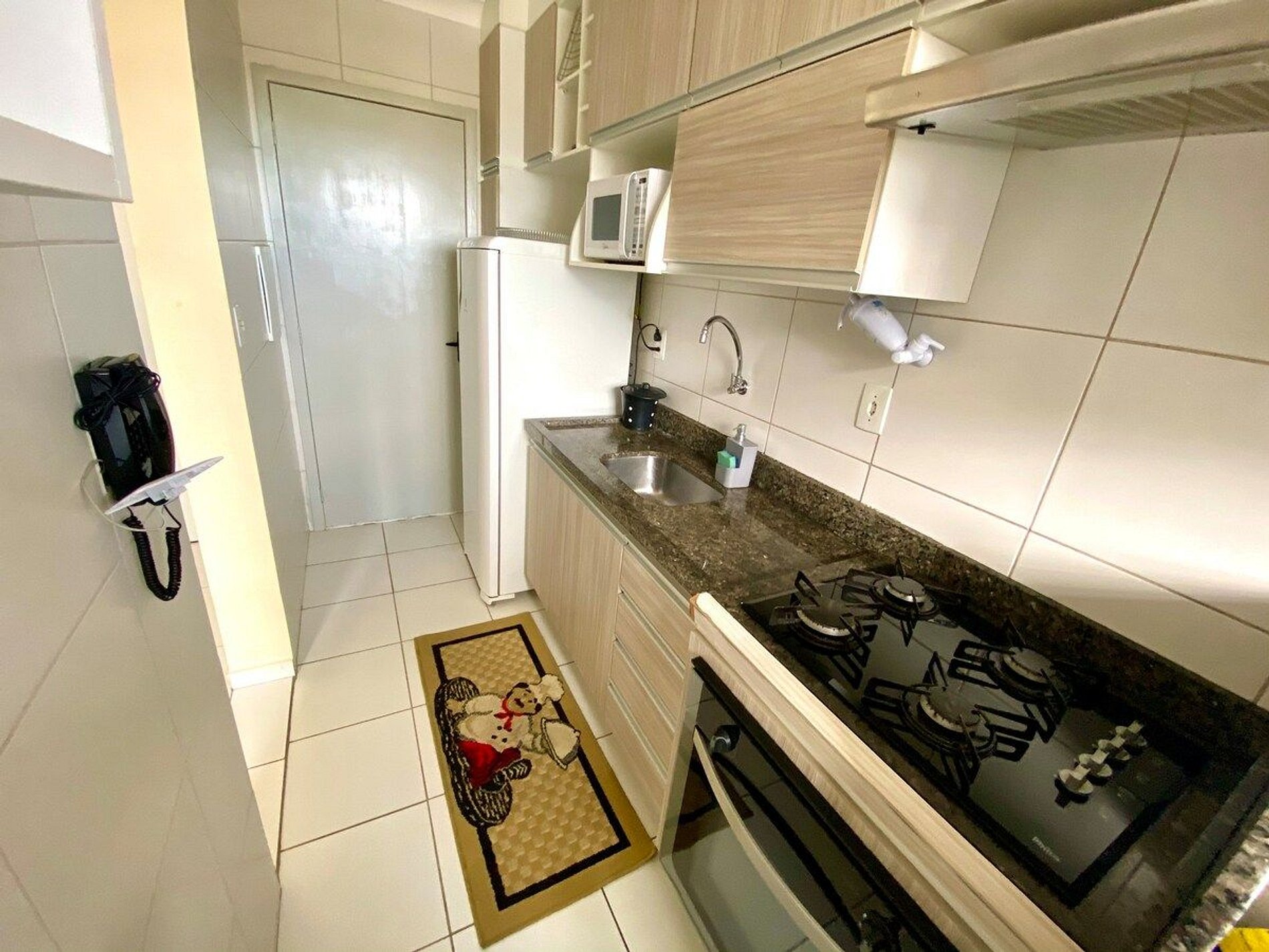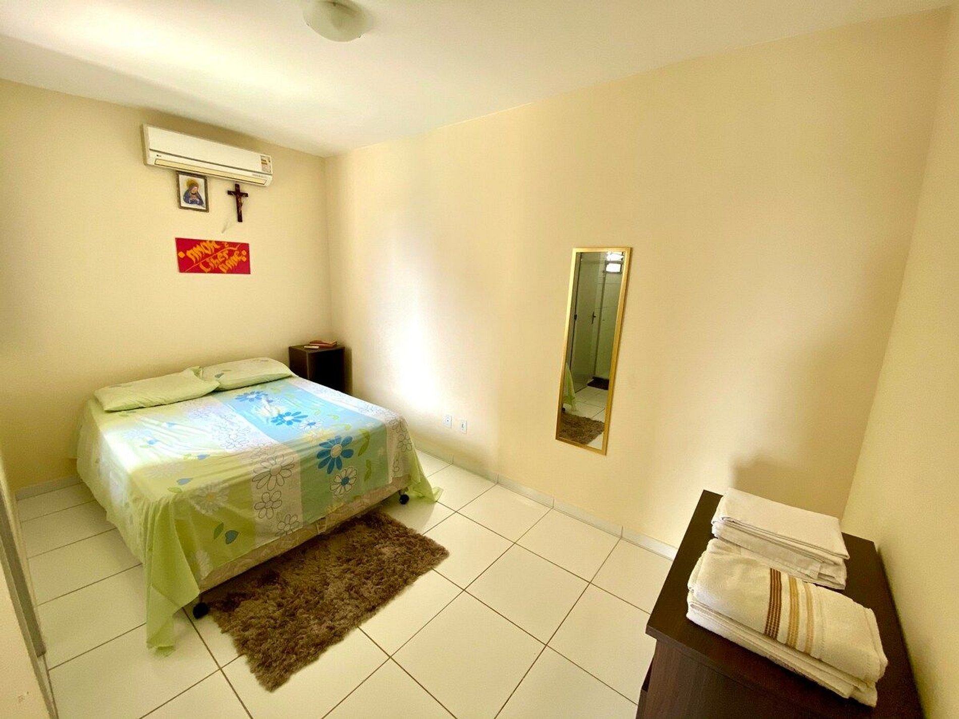 Apartamento super confortável com Wi-Fi num agradável condomínio familiar com uma suíte com cama de casal e ar-condicionado, um quarto com duas camas de solteiro e ventilador, mais um quarto com mesa de notebook, cadeira giratória e guarda-roupas 6 portas, além de banheiro social. Sala com rede, plantinhas e um grande e gostoso sofá expansivo, bem em frente a uma bela TV com possibilidade de acesso a NETFLIX e YOUTUBE.Mesa para quatro pessoas numa ventilada varanda integrada à sala, com vista para muito céu e paisagem verde. Cozinha é equipada com cooktop, forno, microondas, geladeira, sanduicheira, liquidificador, além de panelas, pratos, copos, talheres e etc. Área de serviço com máquina de lavar, varal e tanque.
