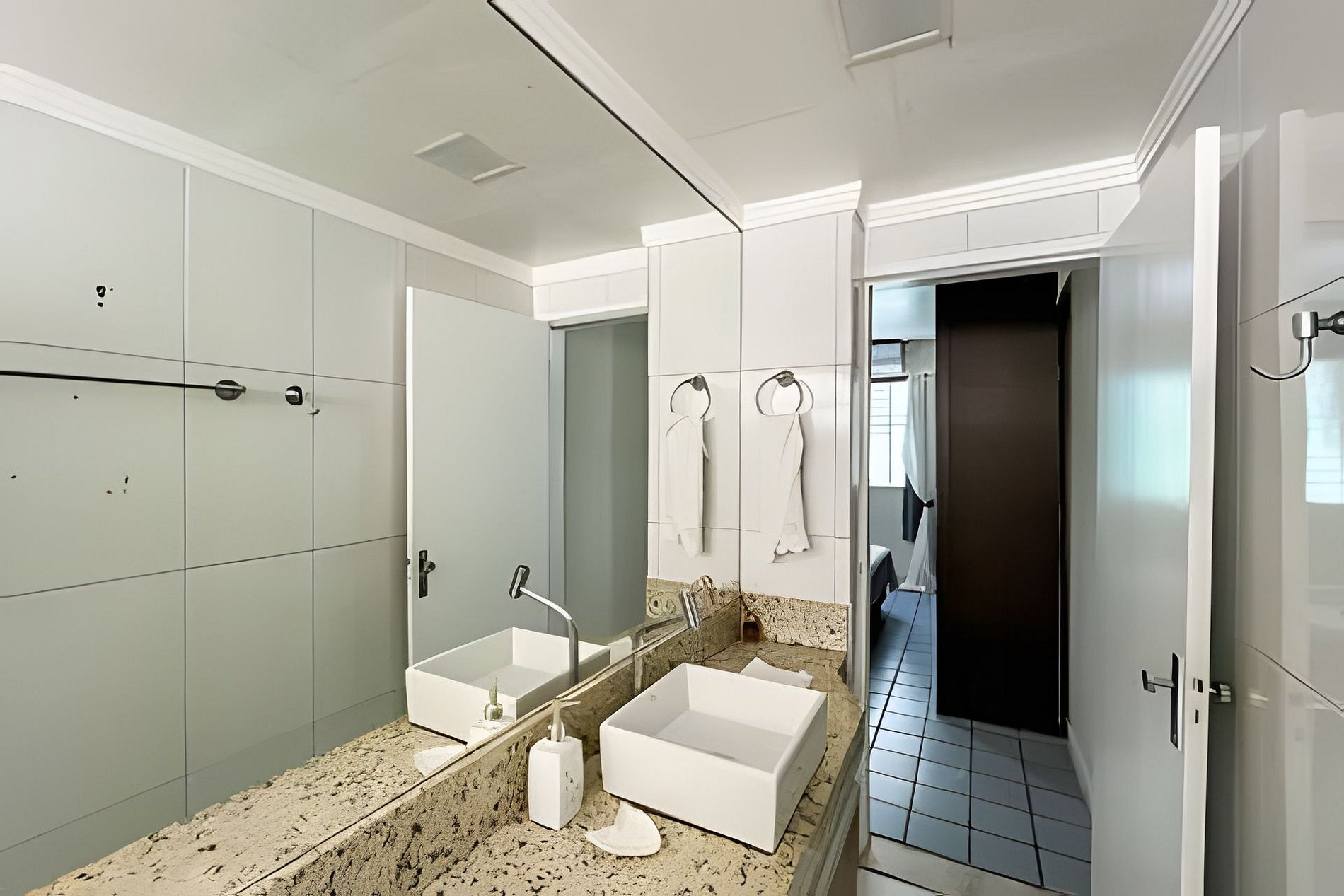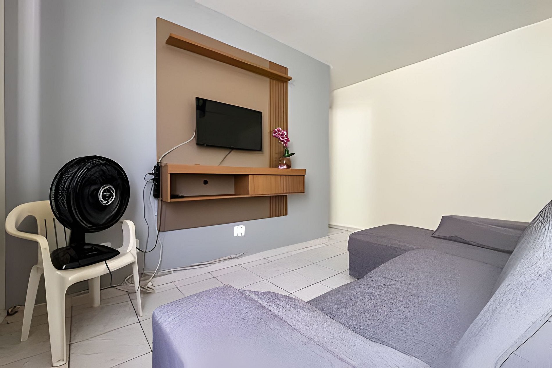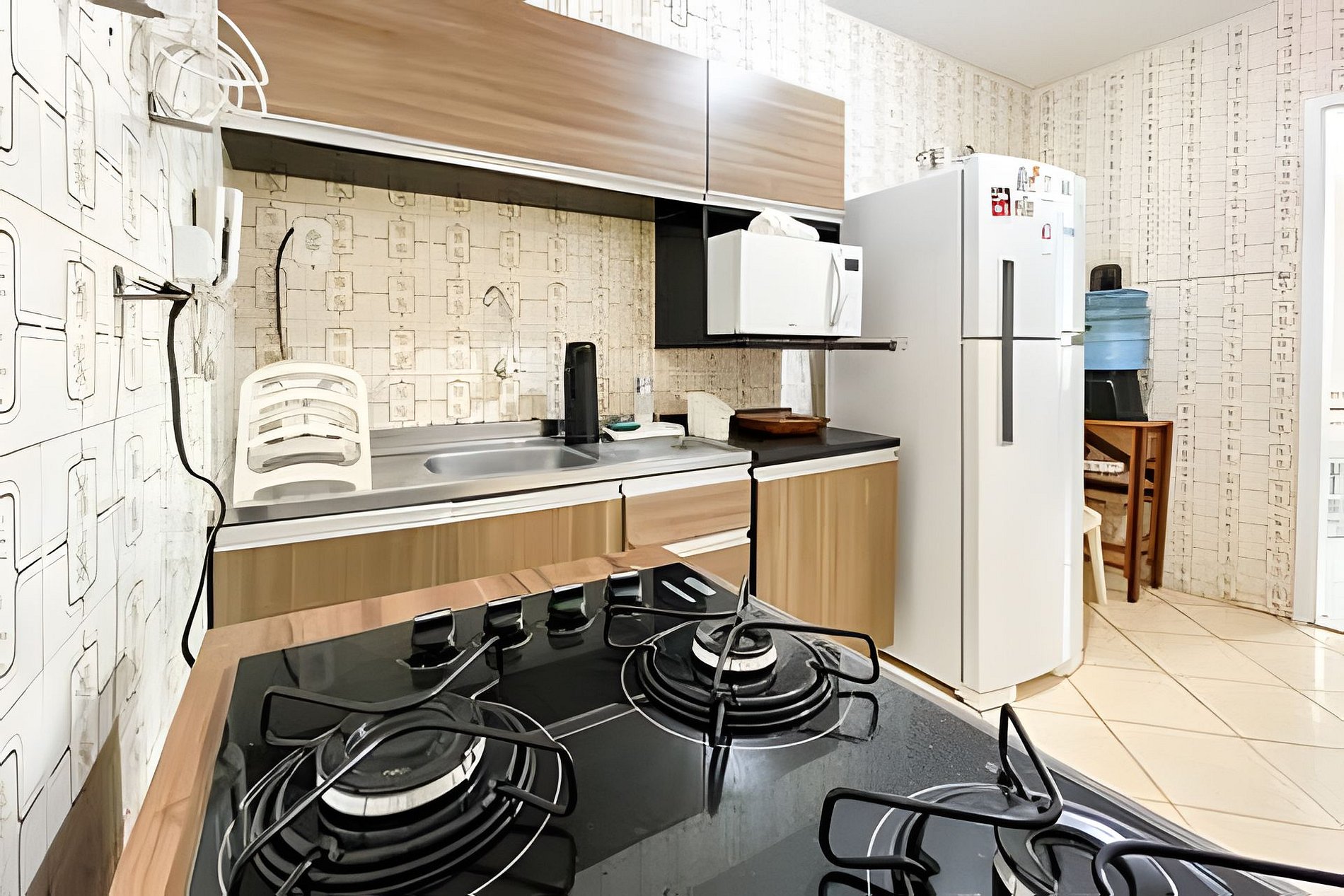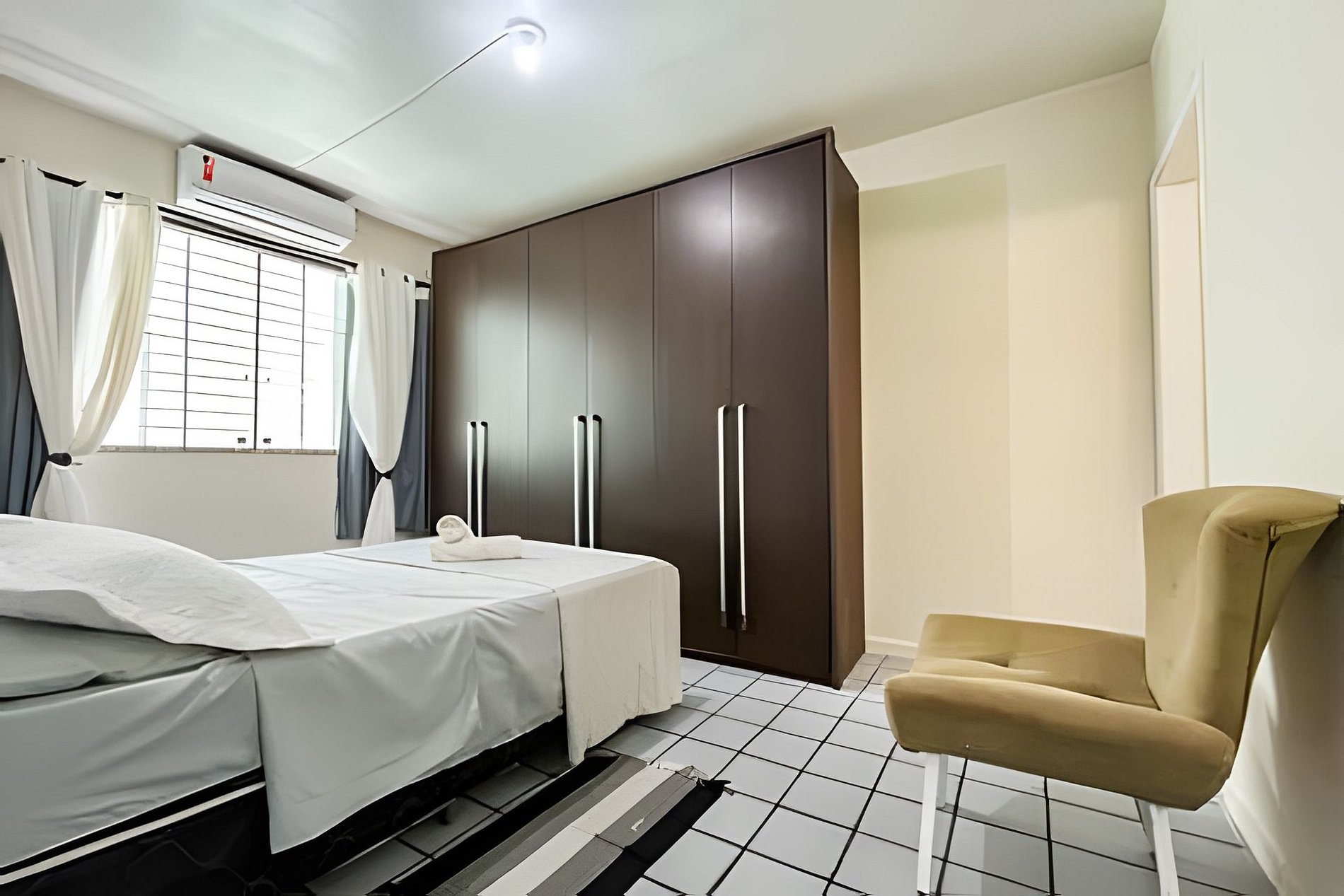 Espaço confortável com três quartos sendo um suíte, todos com cama de casal e com ar-condicionado. Ampla sala de estar com sofá, hack, TV SMART 32’ e ventilador. Sala de jantar com mesa e 4 cadeiras. Internet muito boa. Cozinha totalmente equipada com utensílios básicos para a preparação de variados alimentos, contando com geladeira duplex, fogão e microondas. Nossa área de serviço conta com máquina de lavar roupas, pia lavanderia, varal e acesso ao terceiro banheiro. Total de três banheiros no apartamento sendo todos deles com box, dois com chuveiro elétrico e espelho. Uma vaga de garagem a disposição com controle do portão eletrônico a disposição do hóspede.