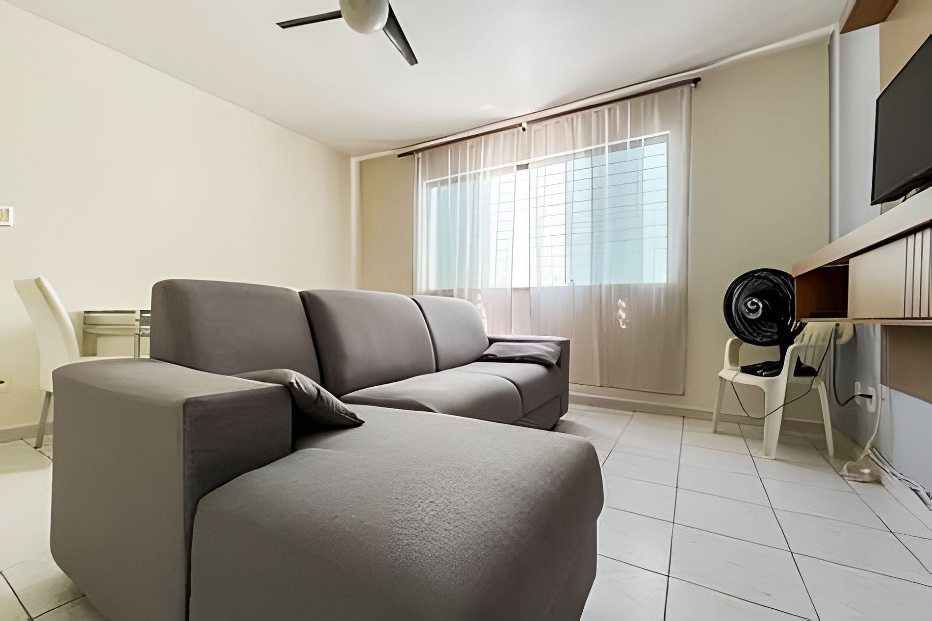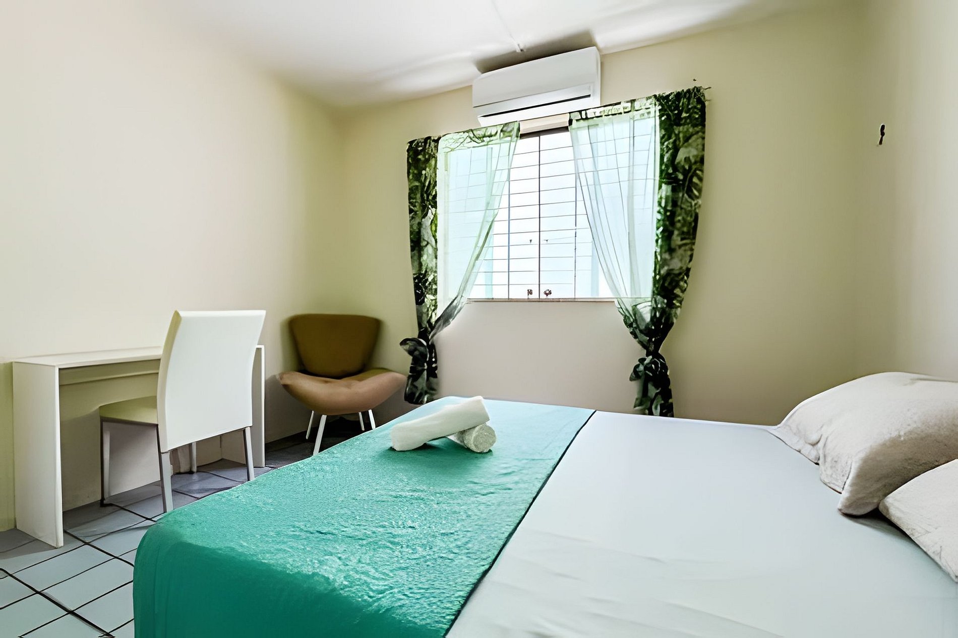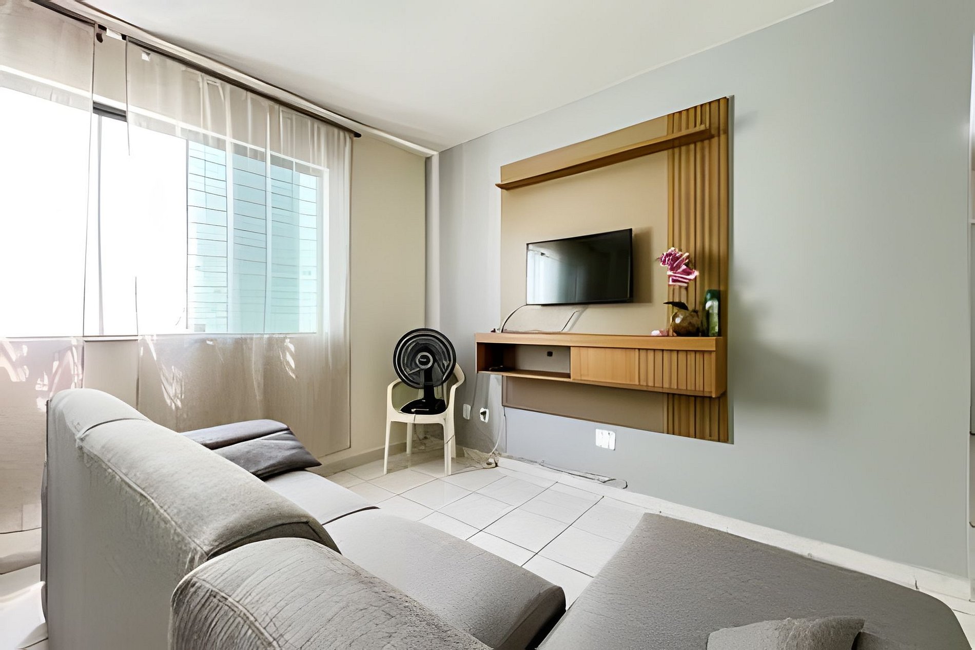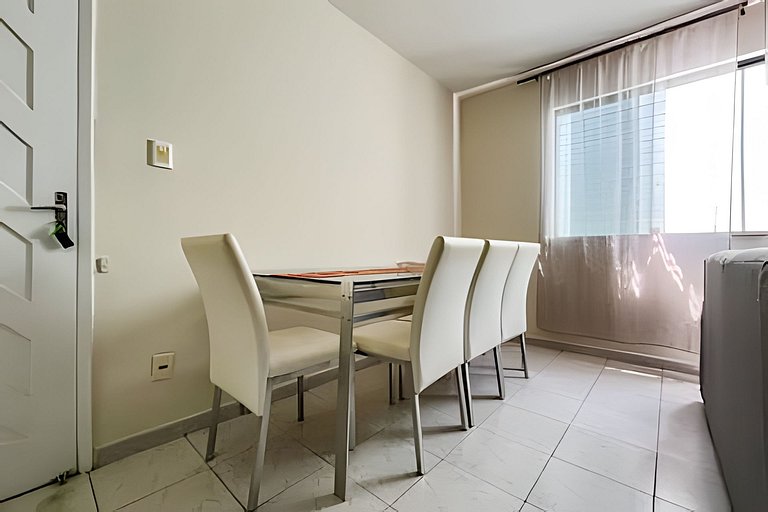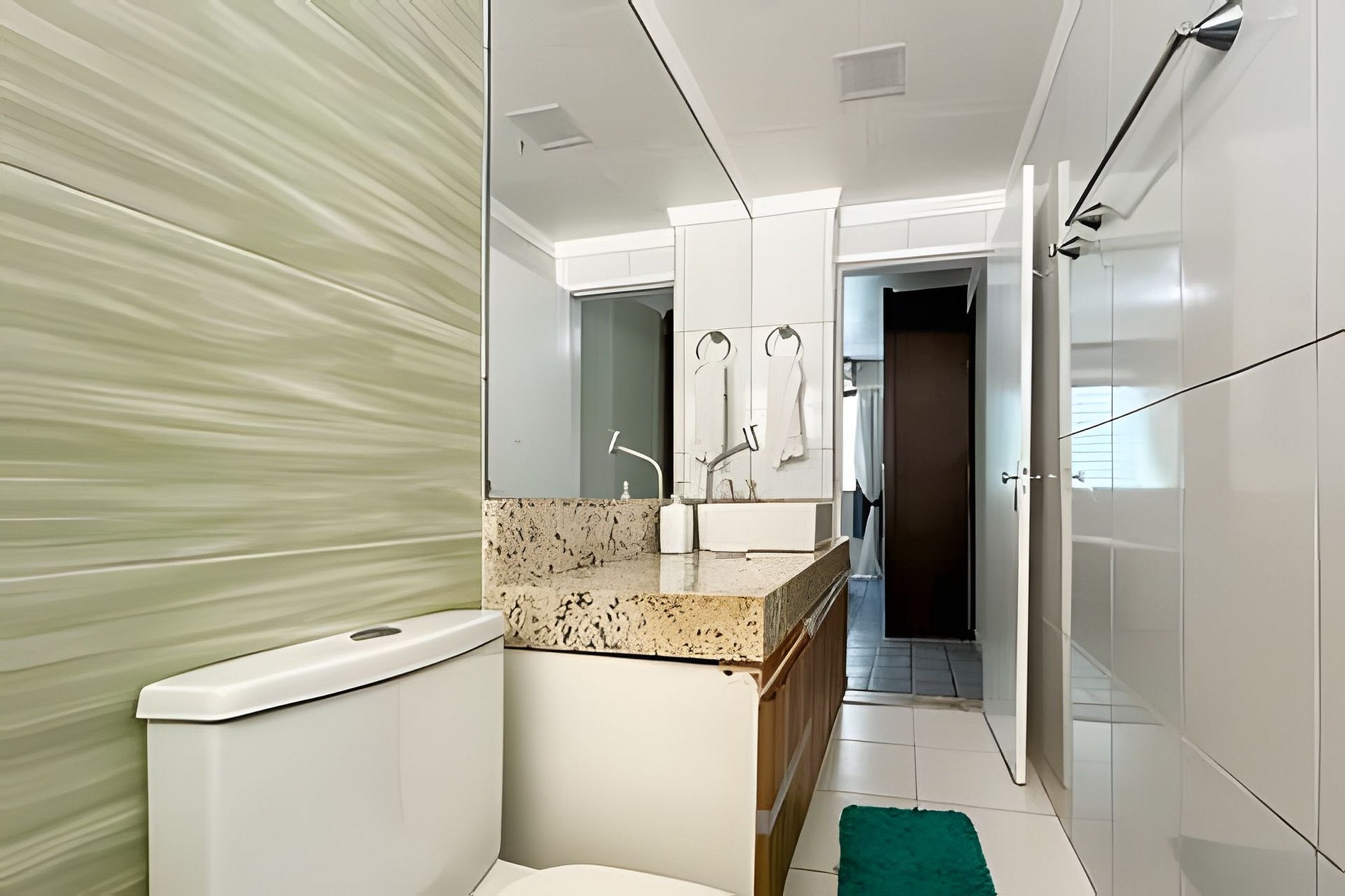 Espaço confortável com três quartos sendo um suíte, todos com cama de casal e com ar-condicionado. Ampla sala de estar com sofá, hack, TV SMART 32’ e ventilador. Sala de jantar com mesa e 4 cadeiras. Internet muito boa. Cozinha totalmente equipada com utensílios básicos para a preparação de variados alimentos, contando com geladeira duplex, fogão e microondas. Nossa área de serviço conta com máquina de lavar roupas, pia lavanderia, varal e acesso ao terceiro banheiro. Total de três banheiros no apartamento sendo todos deles com box, dois com chuveiro elétrico e espelho. Uma vaga de garagem a disposição com controle do portão eletrônico a disposição do hóspede.