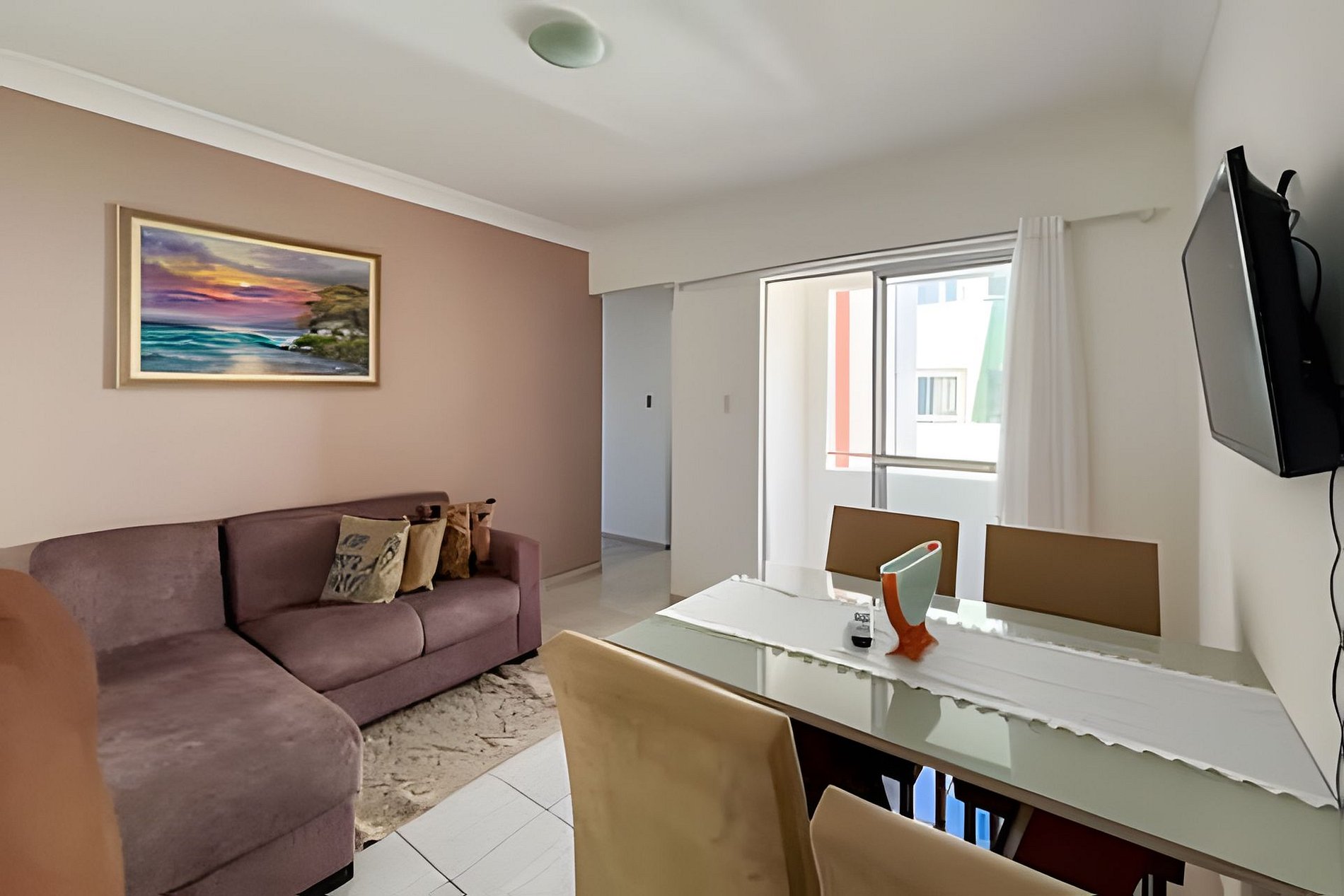 Espaço confortável com três quartos com cama de casal sendo dois com ar-condicionado. Ampla sala de estar com sofá, hack, TV SMART 32’ e ventilador. Cozinha bem equipada com utensílios básicos para a preparação de variados alimentos, contando com geladeira duplex e fogão com forno. Nossa área de serviço conta com pia lavanderia. Banheiro com chuveiro elétrico. Uma vaga de garagem coberta a disposição.