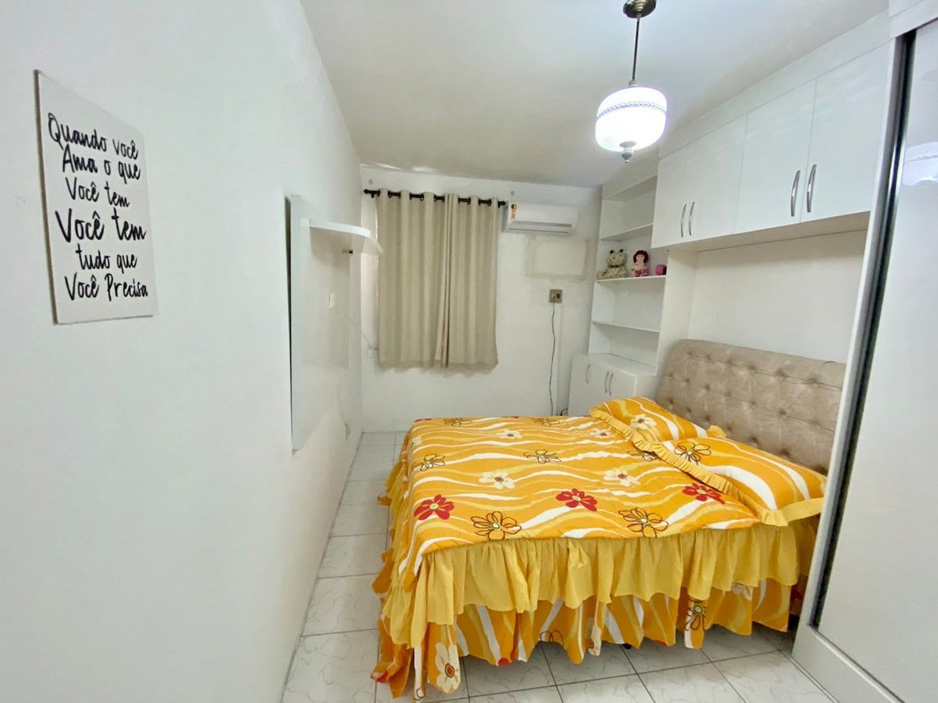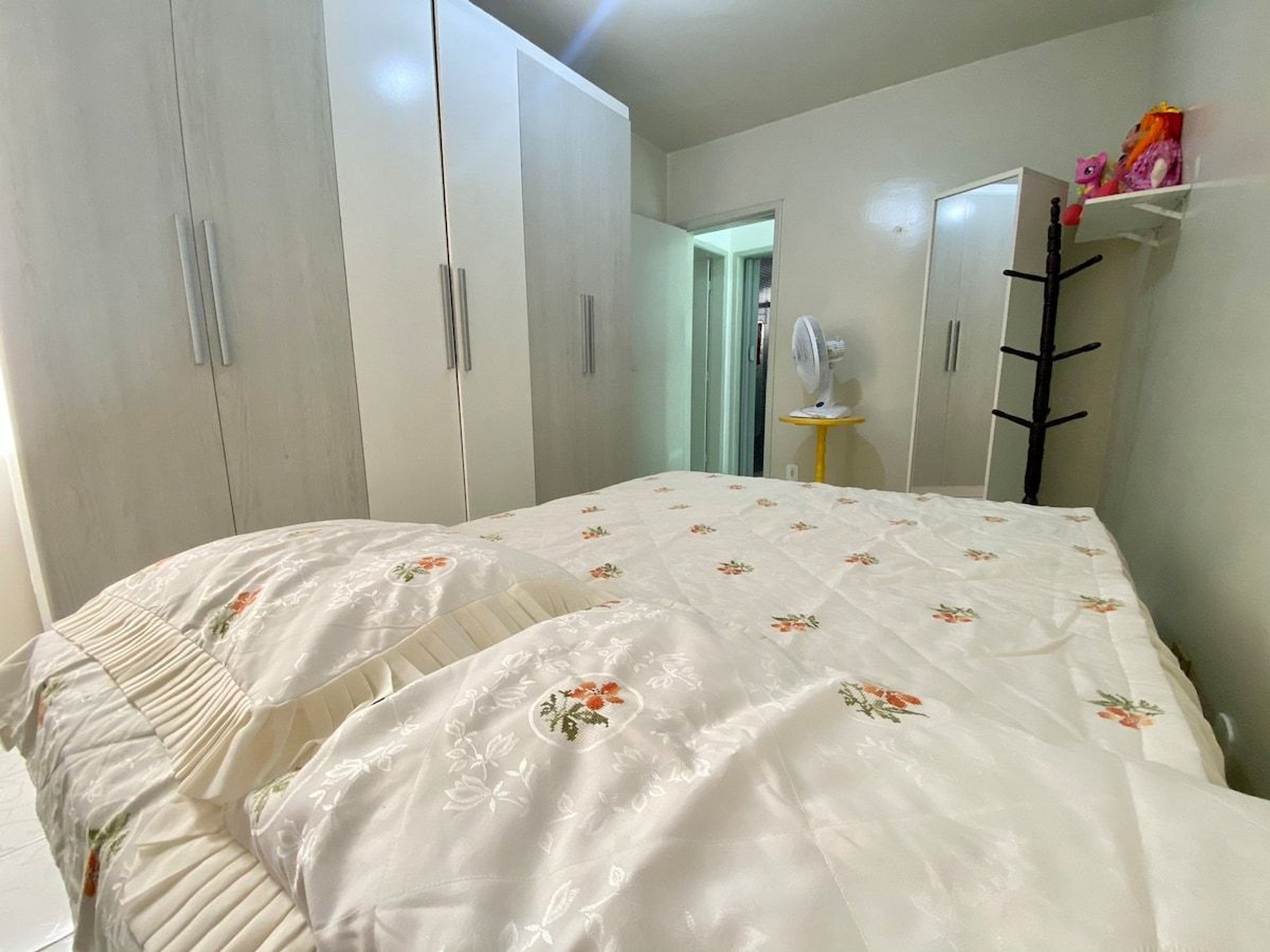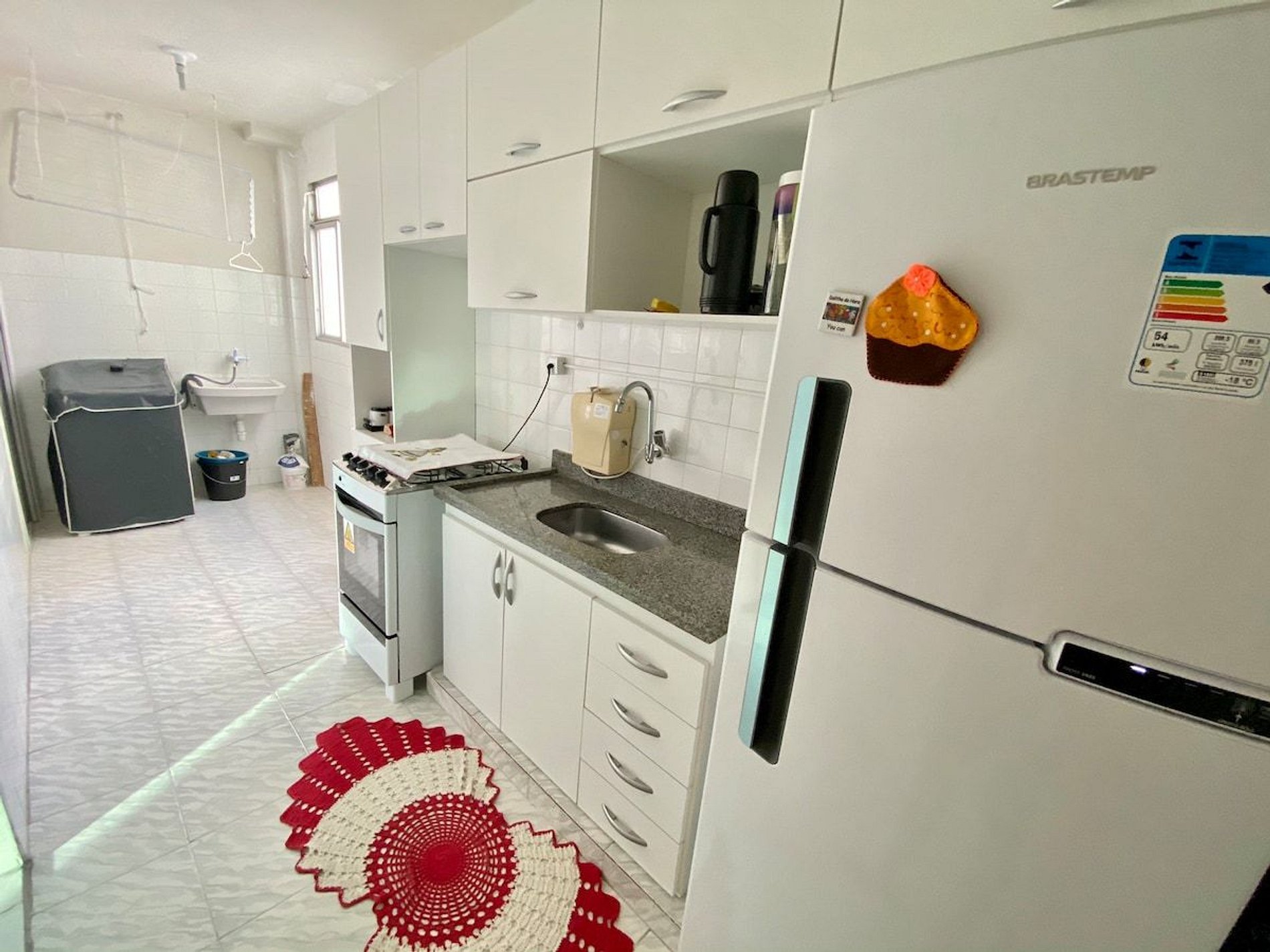 Imóvel possui dois quartos, sendo um com ar condicionado e o outro com ventilador, é bastante arejado e situado no primeiro andar de um prédio sem elevador em um respeitável e tradicional condomínio da cidade. O quarto com ar-condicionado possui cama de casal e guarda-roupas planejado, as janelas tem cortinas blackout e tela de proteção. O quarto com ventilador possui cama de casal e guarda-roupas planejado. Na sala encontramos mesa de jantar, sofá retrátil super confortável, TV Smart e janela com cortinas, decoração muito aconchegante. Banheiro completo. Na cozinha temos geladeira duplex grande, armário de cozinha planejado com bastante espaço, fogão com forno, microondas e pia com balcão. Área de serviço unida a cozinha com máquina de lavar e varal de parede portátil.