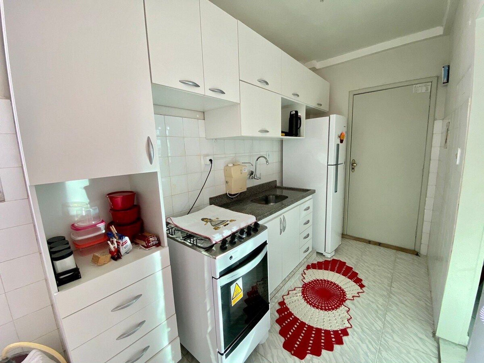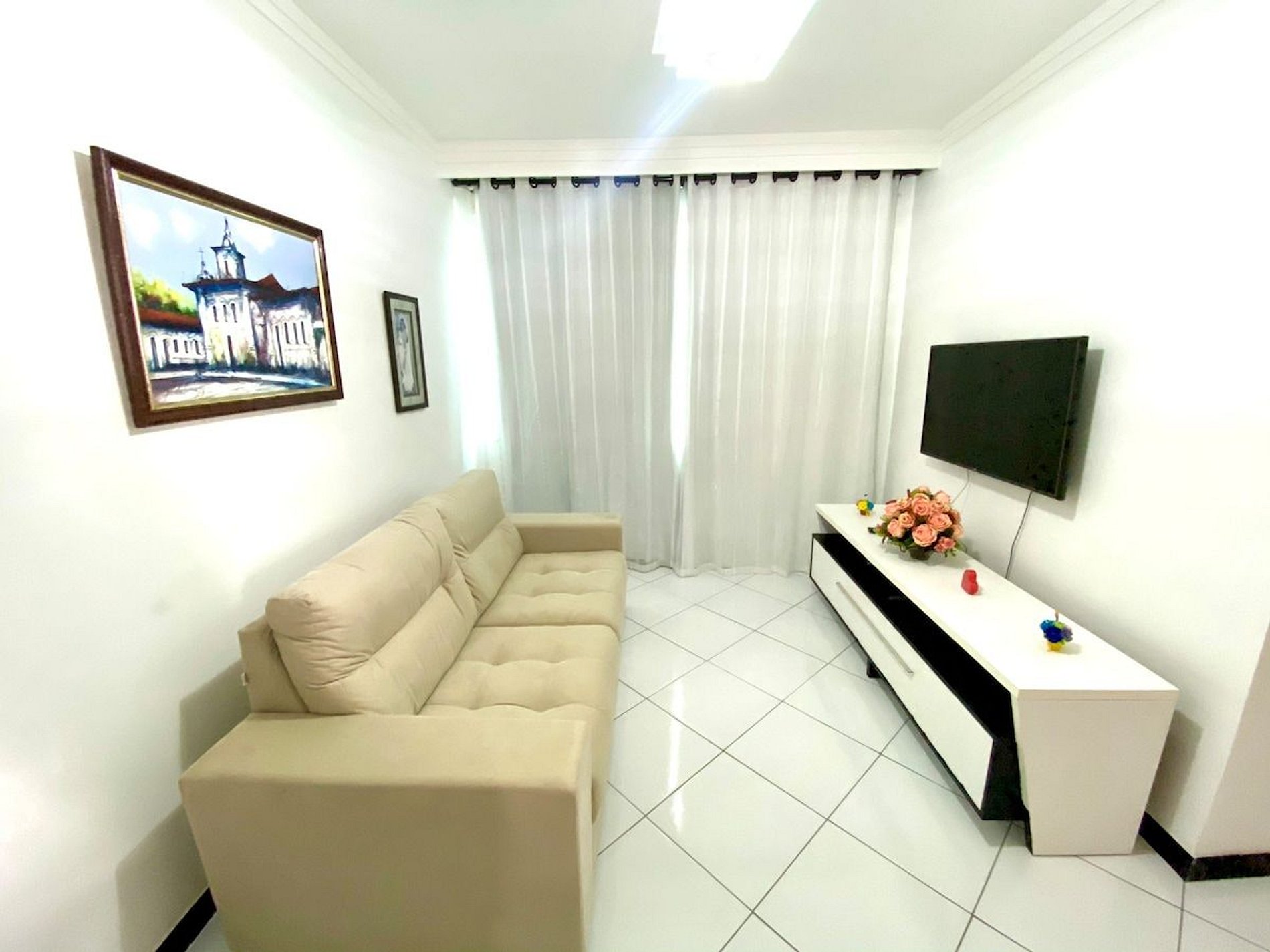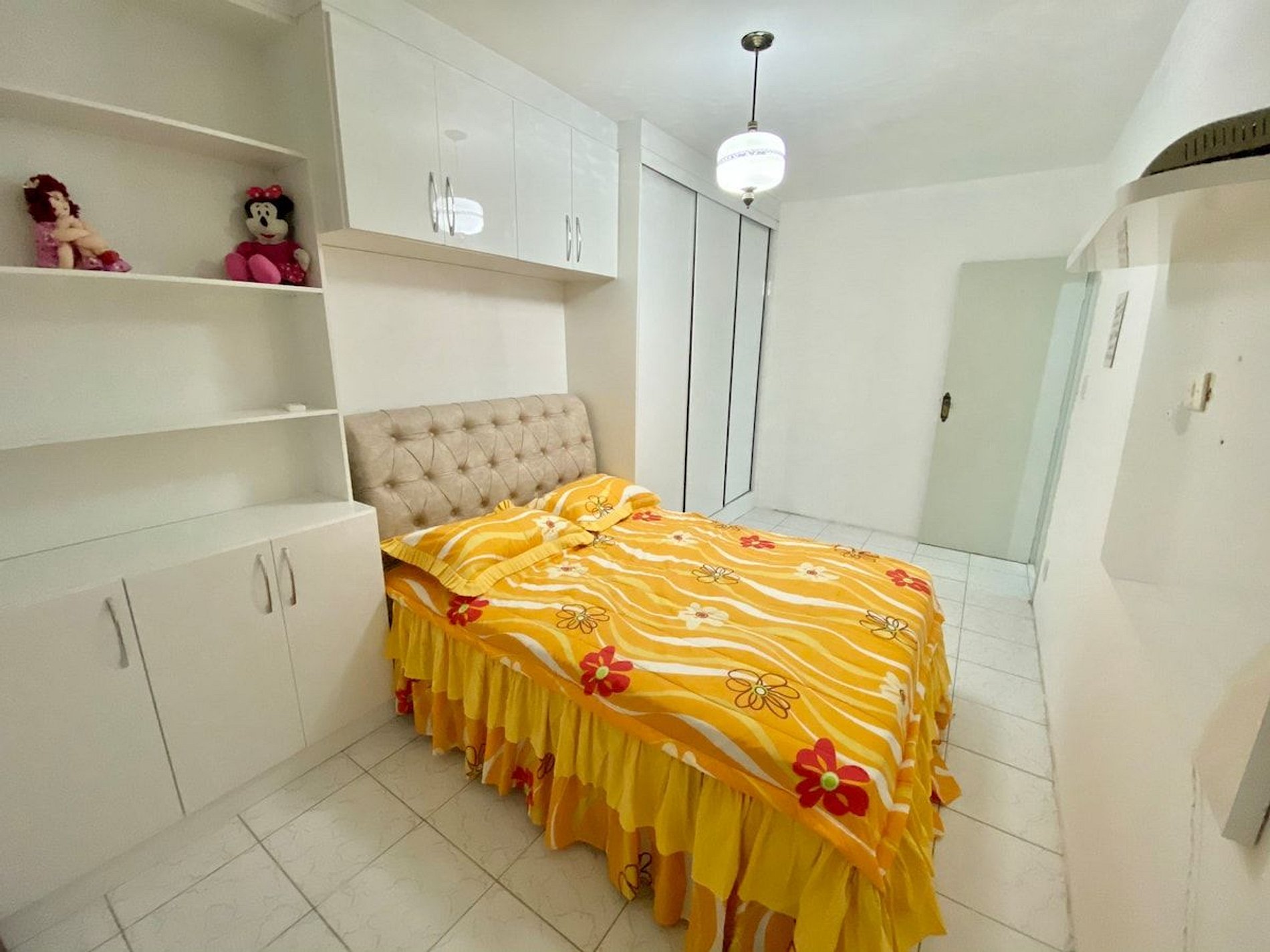 Imóvel possui dois quartos, sendo um com ar condicionado e o outro com ventilador, é bastante arejado e situado no primeiro andar de um prédio sem elevador em um respeitável e tradicional condomínio da cidade. O quarto com ar-condicionado possui cama de casal e guarda-roupas planejado, as janelas tem cortinas blackout e tela de proteção. O quarto com ventilador possui cama de casal e guarda-roupas planejado. Na sala encontramos mesa de jantar, sofá retrátil super confortável, TV Smart e janela com cortinas, decoração muito aconchegante. Banheiro completo. Na cozinha temos geladeira duplex grande, armário de cozinha planejado com bastante espaço, fogão com forno, microondas e pia com balcão. Área de serviço unida a cozinha com máquina de lavar e varal de parede portátil.